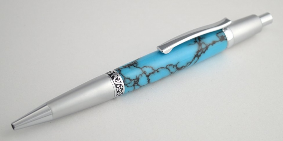 This one is a turquoise Truestone in Satin Chrome/Chrome. It's the first Truestone I've turned.