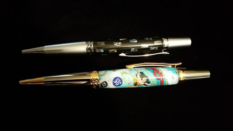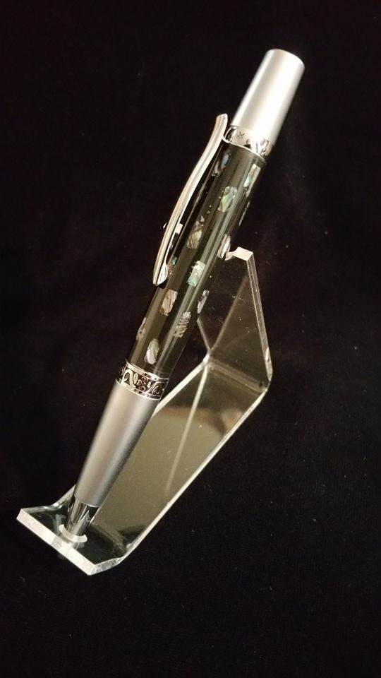 The abalone was purchased in Hawaii in a sheet. I didn't want to do round holes so I purchased the rectangular punch at Michaels and tried it. It worked out pretty good but would have liked the pieces a little bit bigger. I still think the pen is 'missing' something. Maybe more abalone on the next one or something else in with it....hmmmmmm....
