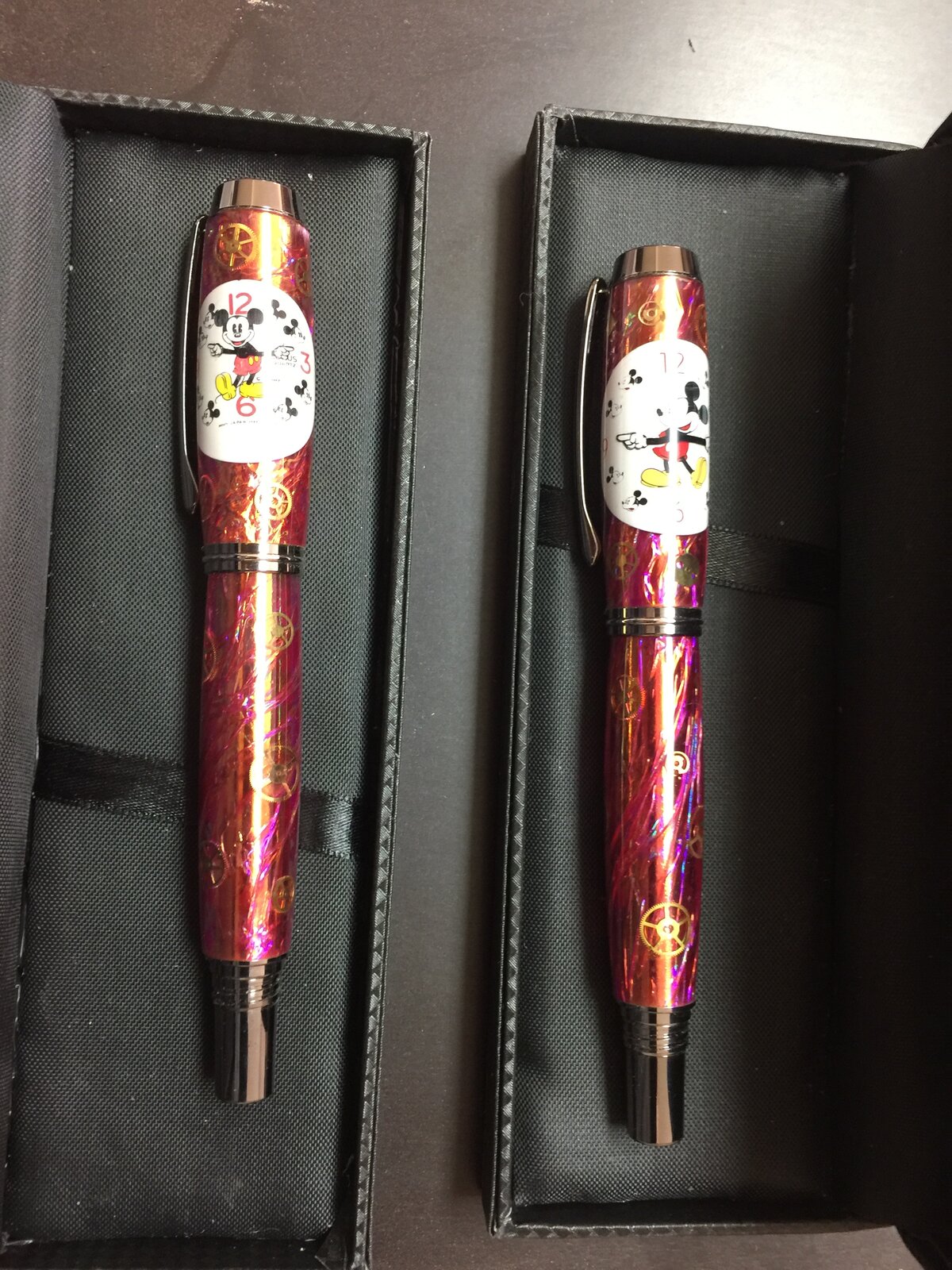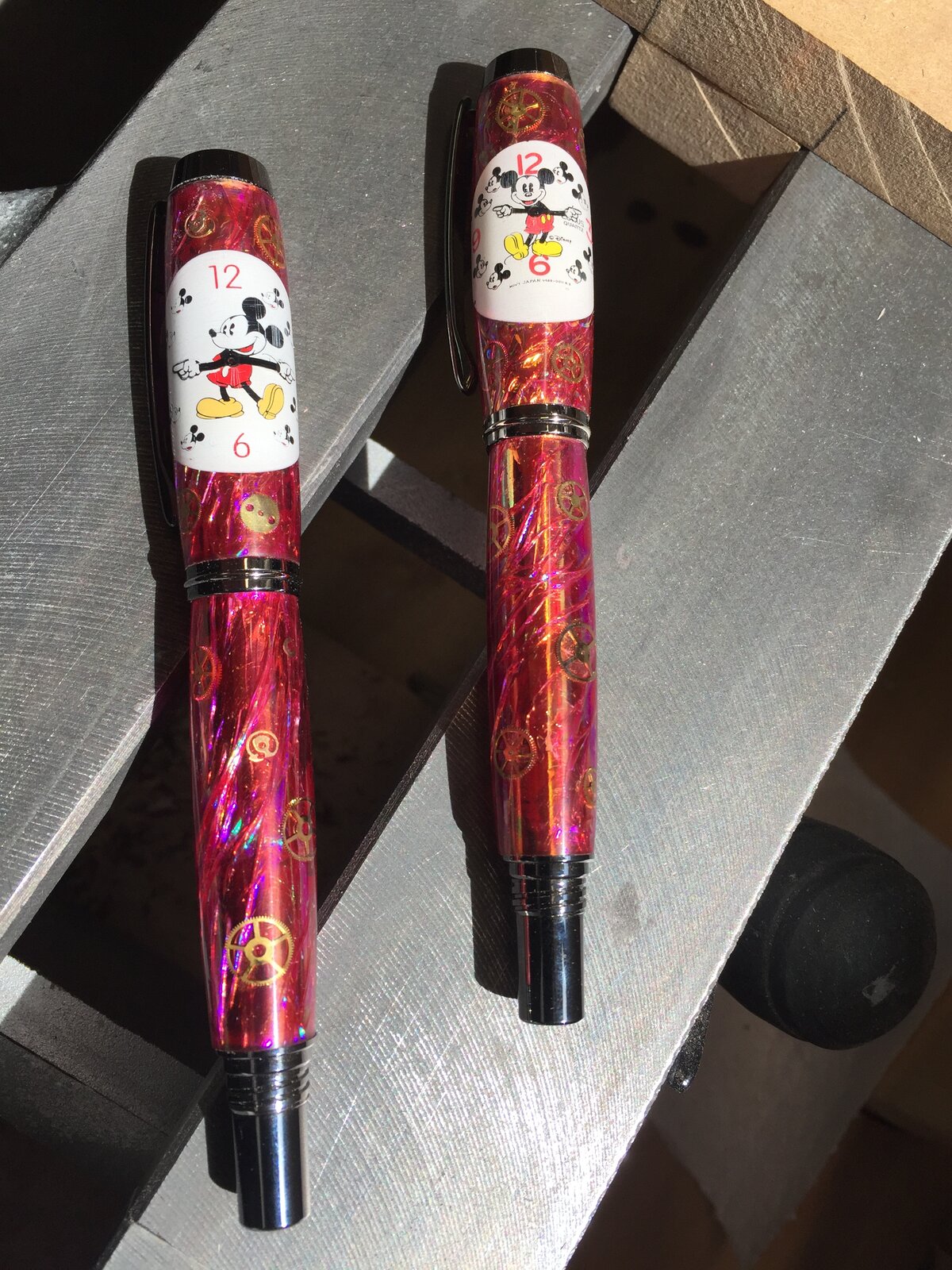 Two Mickey Fountain Pen/Rollerballs for oldest Sister and youngest Aunt. Kits and blanks from Exotic Blanks. The mickeys are Johnu blanks. Not the best photos.