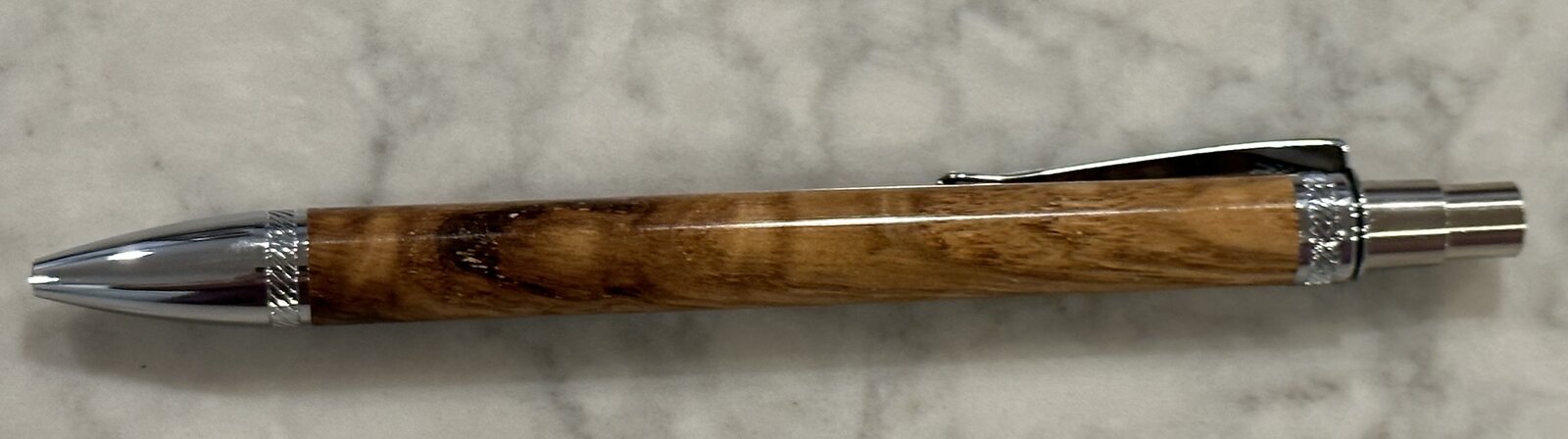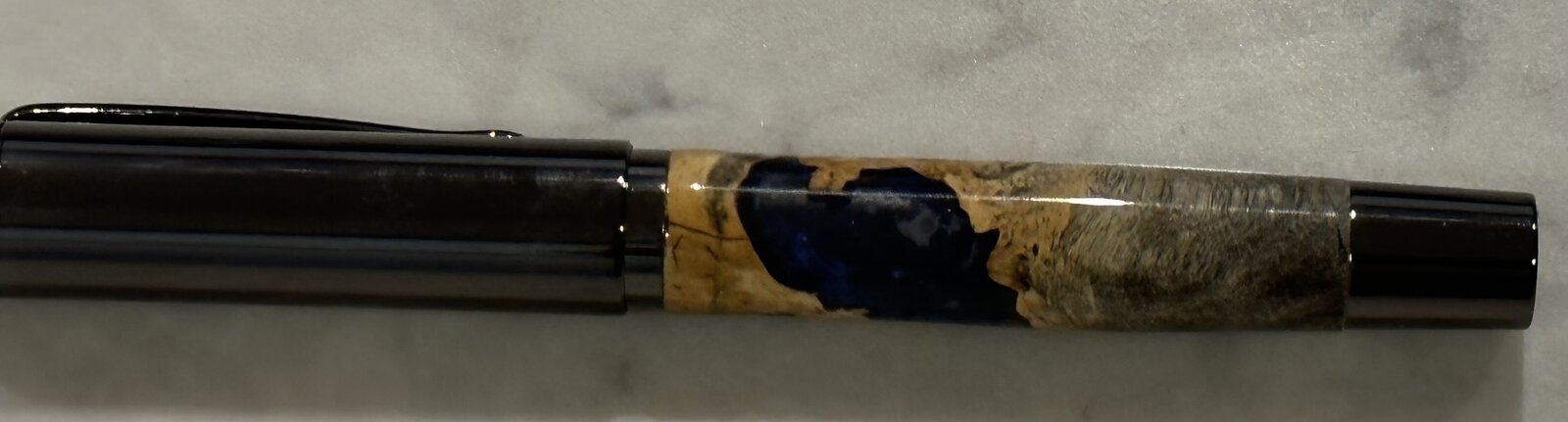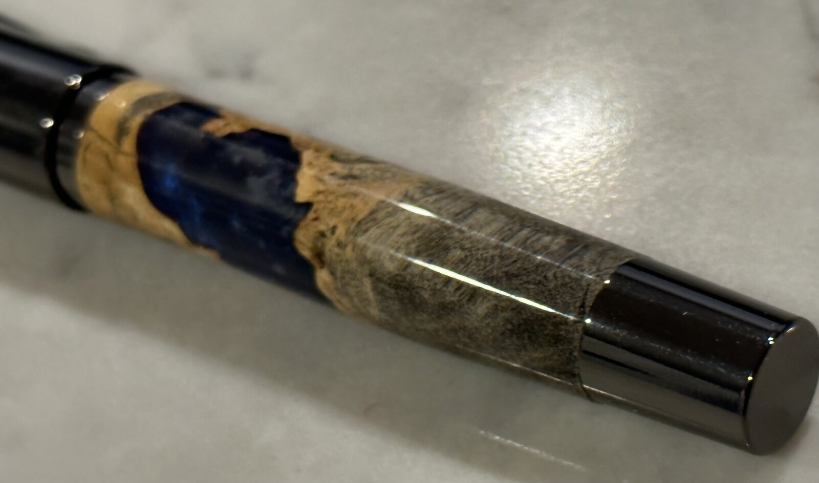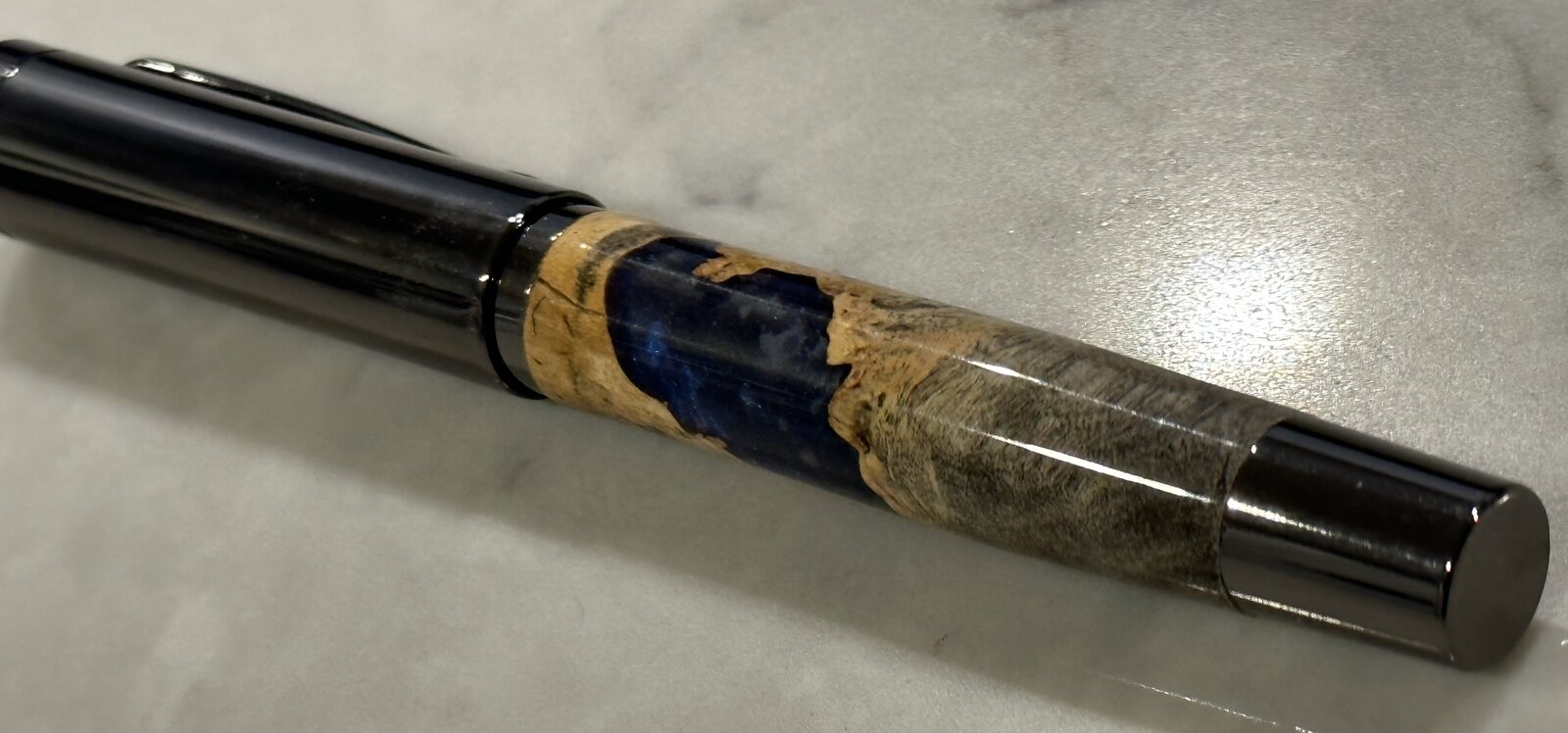 So I completed two new kits for me today. The Derek is a gun metal finish. The blank is a buckeye burl with cast blue.