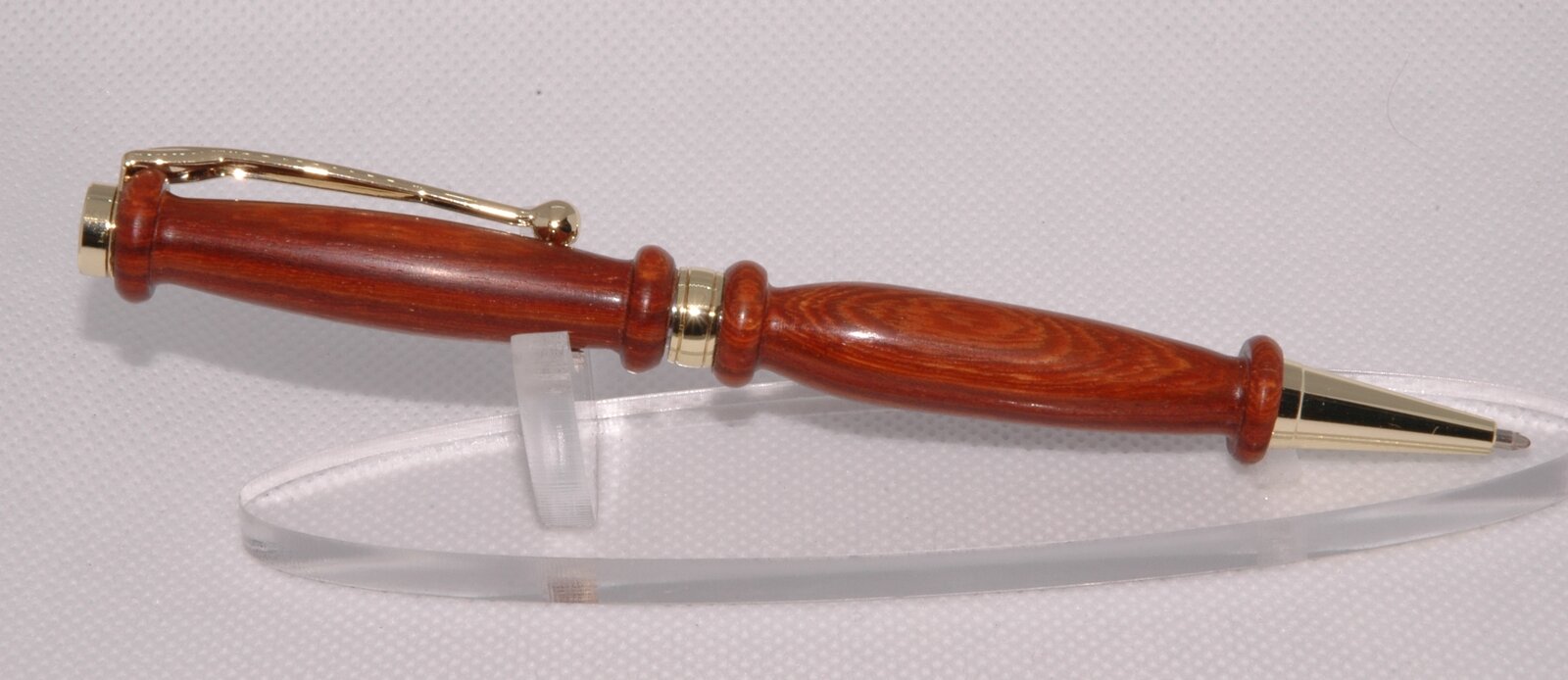 I have tried to take inspiration from Peter in Australia he seems to make a Slimline pen into something interesting. One Pen is Olive Wood from Bethlaem and the other is Wamara( Guyana Rose Wood ). Hope they are of interest please feel free to comment.