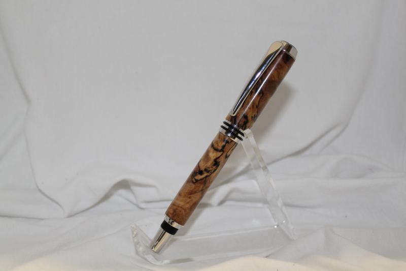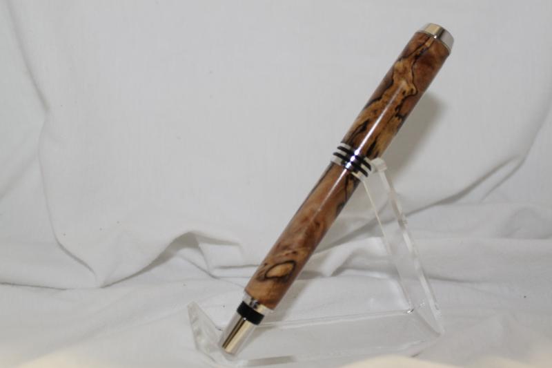 I had some spalted pecan in the shop, a few more blanks still there, that I wanted to try. So I got a Tycoon Rhodium kit and this is what I came up with. The pecan has 8 coats of BLO/CA polished to 12000mm and Novus 2.