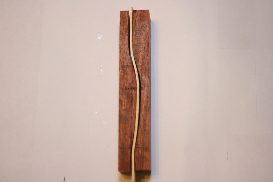 Thanks Steve for you comments. The center strip is about 0.091 I really didn't measure the strip before I cut it just guessed and it was a bit to wide so I have to boil it (about 15 minutes) and clamped it in my vise for 3 days and after that I took it out and let it dry for another day it kept it shape. Here are a few photo's of what it looked like.