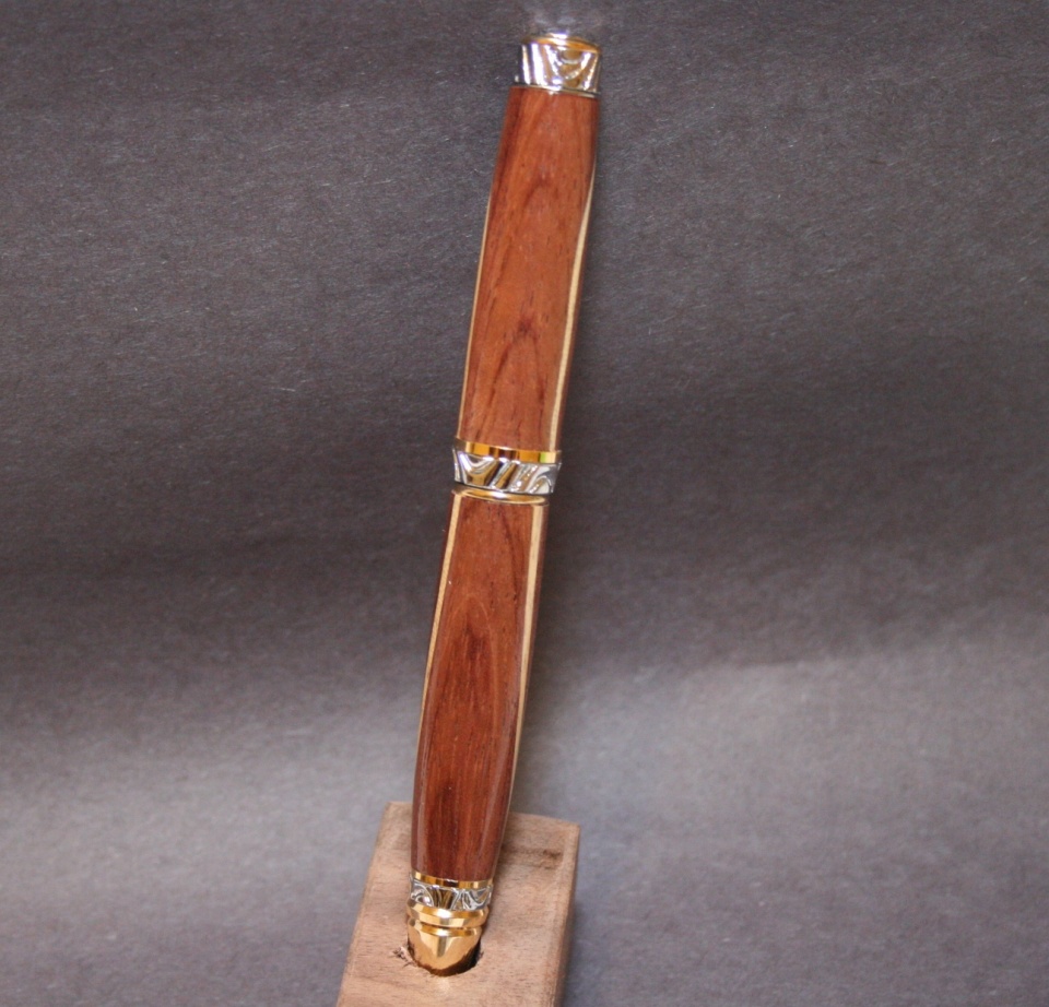 Here is my second attempt at a wavy blank. This time I used Bubinga and Avodire I like the color contrast better then my last wavy blank. The kit is a Wood River Ultra Cigar that Evelyn picked up at Woodcraft while she as out seeing a client. I like the kit really classy. The finish is 6 or 7 coats of WTF, this is the first time I've use WTF and I like the finish it gives. Overall I happy with the way it came out. As always any and all comments are welcome.