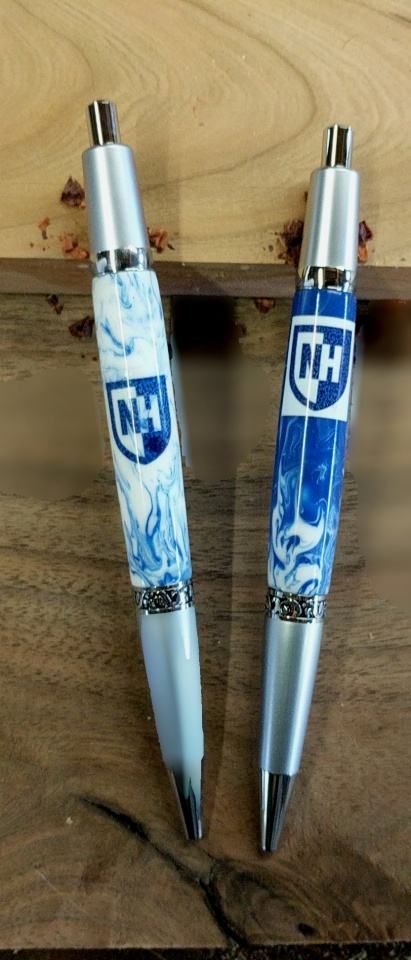 The White with blue accent has a clear decal. and the Blue with white accents uses a white background decal. The image I downloaded from the UNH website and they have specific requirements for using the image which I tried to conform with as much as possible.