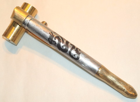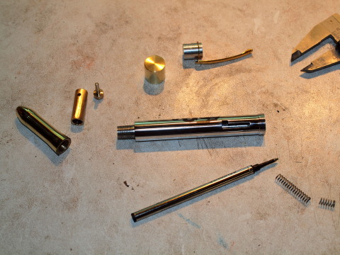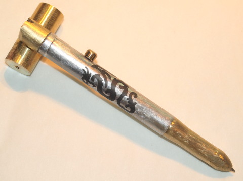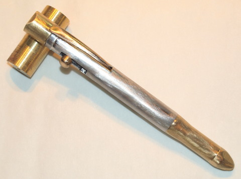 Been working on this pen for ages, little bit at a time inbetween so much other things. It is aluminum and Brass, home made slide activation and it is a rollerball not a ballpoint. It started off all shiny and polished but I was just feeling very tired of shiny so i started beating on it with a cut off wheel, belt sander and 220 paper, then polished it back up with just a paper towel dry rub. Feels so much better and warmer with a beat up finish. Its like a sleeper car, all rusty and nasty, then you pop the hood and theres 900 hp twin turbo nitrus inside. On my beat up pen you effortlessly slide the pin and it unleashes the smoothest gliding feel the grain of the paper rollerball cartridge that you can only get with a classy pen. :biggrin: