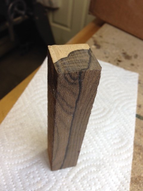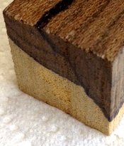 I was perusing around Albuquerque Exotic Woods and came across some unusual blanks. Jake said he found some zircote blanks in the back and had just put them out. A few had half sap and half heart wood.