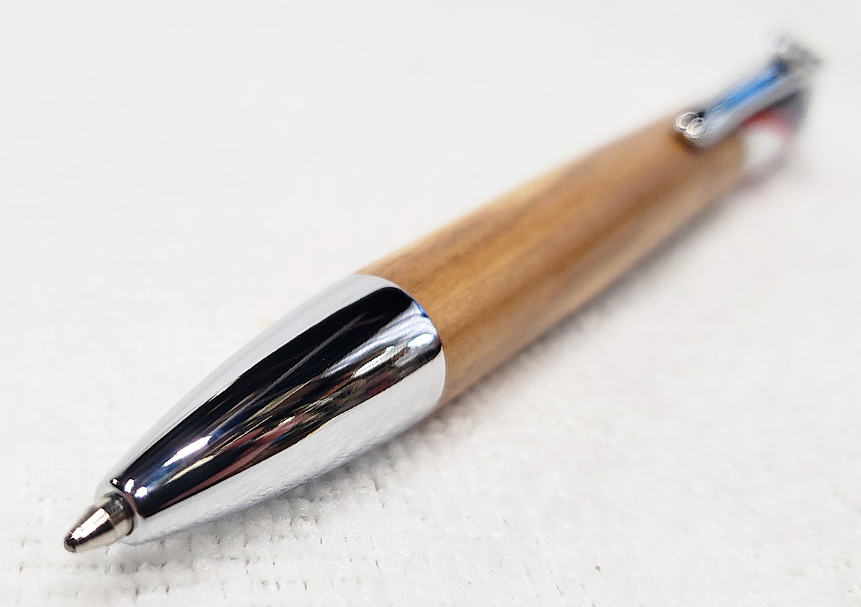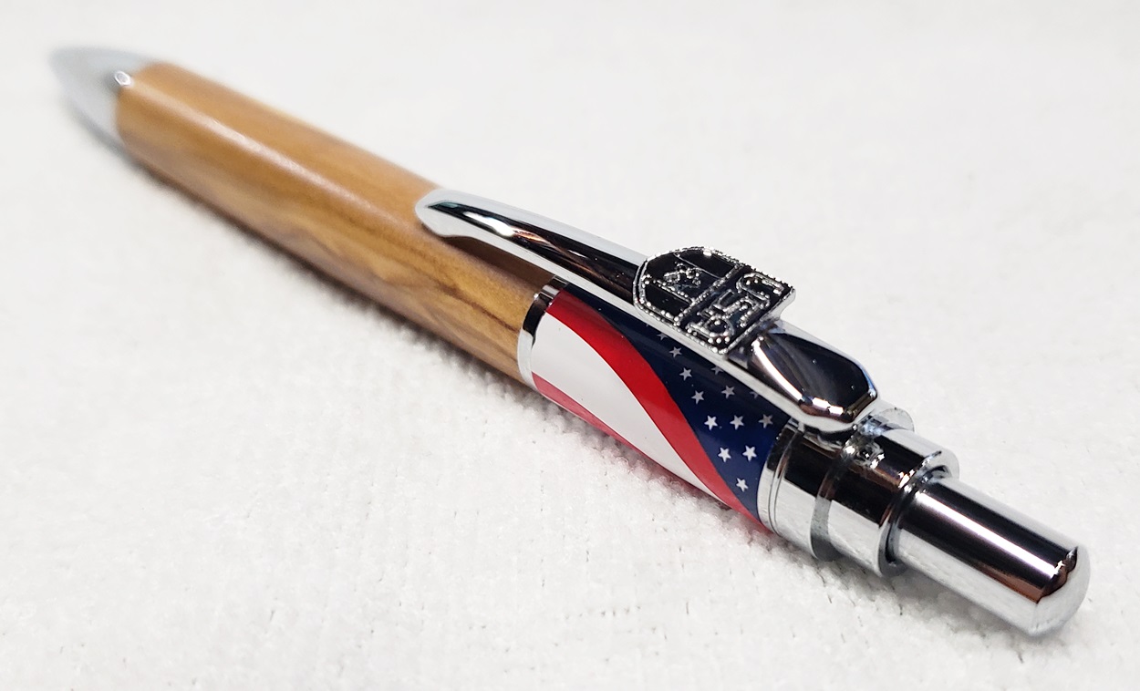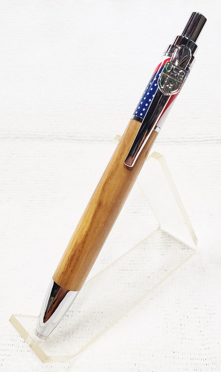 This is a USA click pen, in chrome, and is my second. It's from Woodturningz. The blank is Roman Olive from Woodcraft. The finish is Pens Plus. Made a handsome pen.