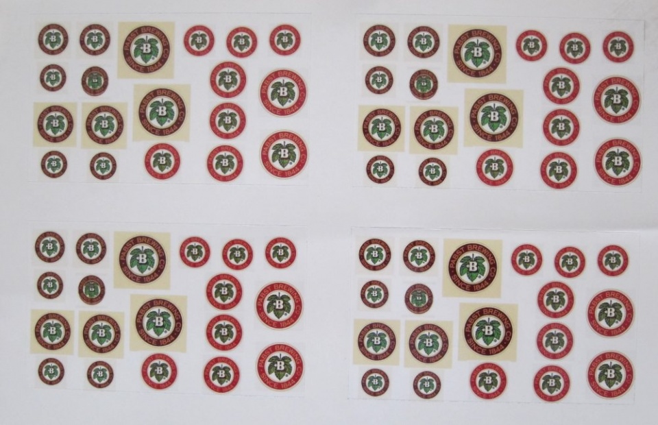 For lessthan $5.00 you can create a sheet of stickers using your own graphic (search Zazzle coupons for big discount). You DO NOT have to use their graphics; you can upload and resize graphics from your computer. In the PBR graphic, I was able to place 19 logos on one sticker and there are four stickers per page.