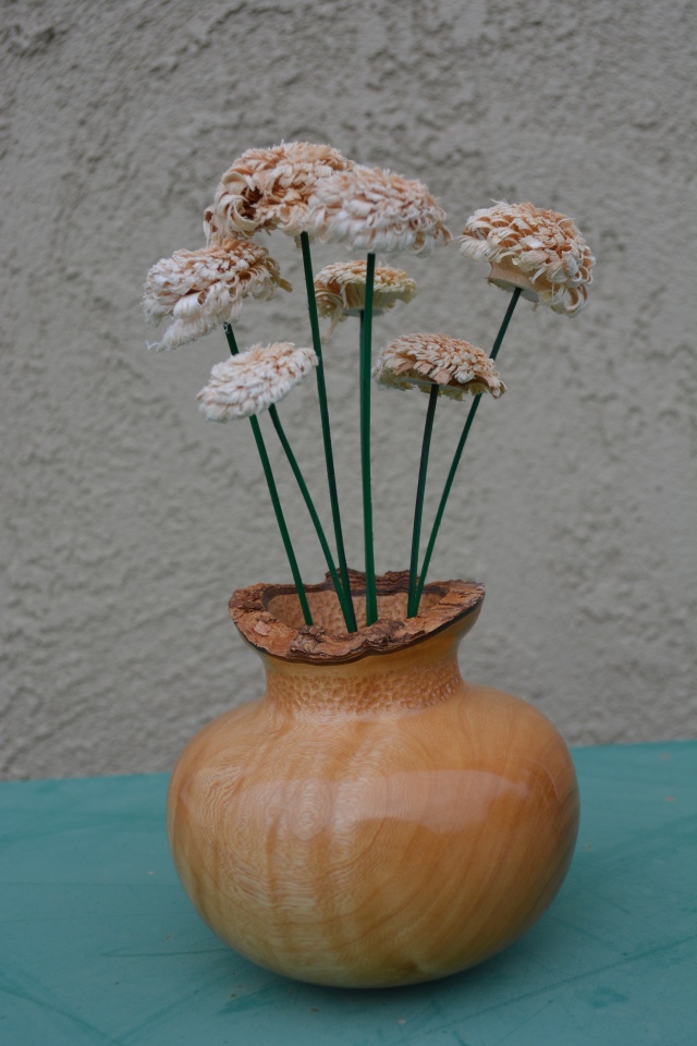Love the look of the vase. Great job on it. How did you make the flowers? I've got 2 bud vases I turned for my wife 4-5 years ago with a single silk rose in each. Been in the same place since I brought them into the house. My wife hates cut flower so I'm good.