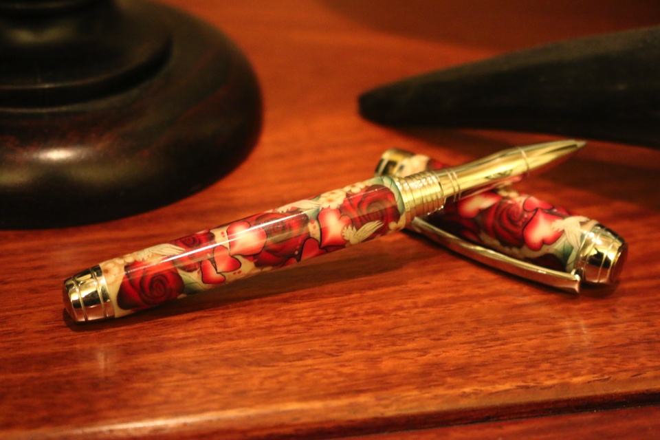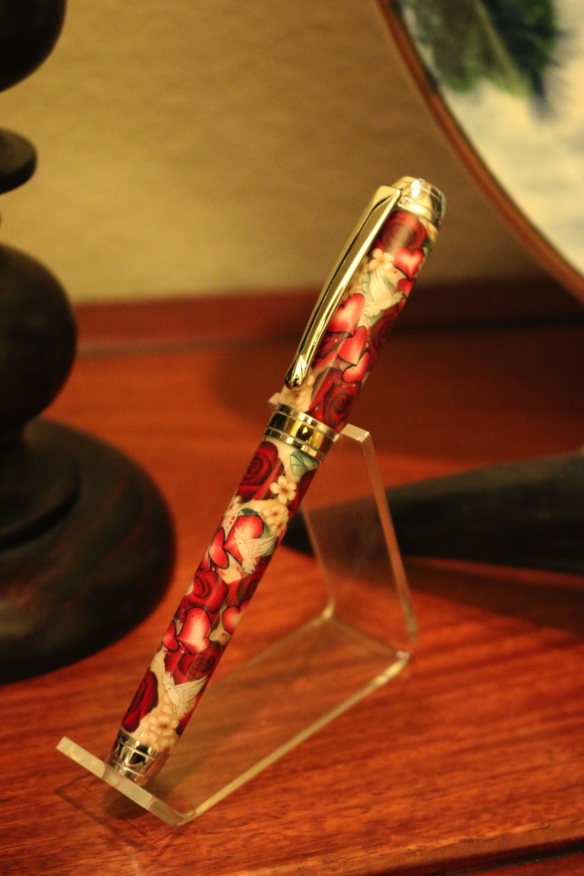 I made a beautiful pen using a pen blank from Toni Ransfield at Clay Pen Blanks. I also used a Mistral Rollerball pen kit that I bought at Turner's Warehouse. My experience with both venders was top notch.