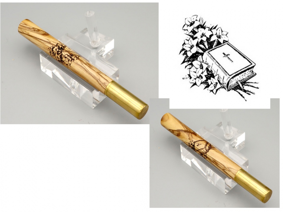 The first three, in Bethlehem Olivewood, were given as Easter gifts; the last two (Crosscut Red Cedar and Brown Mallee Burl) were done just in fun...