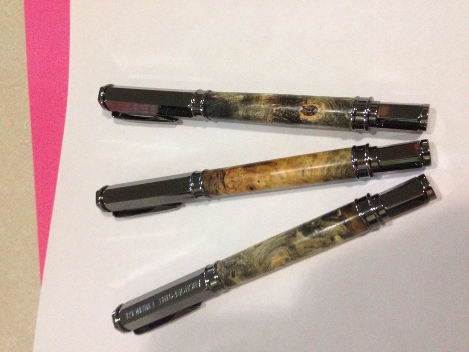 J joe004 Member Joined Feb 6, 2014 Messages 43 Location Cabot, ar May 10, 2015 #1 Finally caught up on honey do's and after hunting season repairs I got back to the lathe and turned a few pens for some folks at my wife's office. Vertex magnetic cap pens with buckeye burl. Attachments image.jpg 200.7 KB · Views: 237
