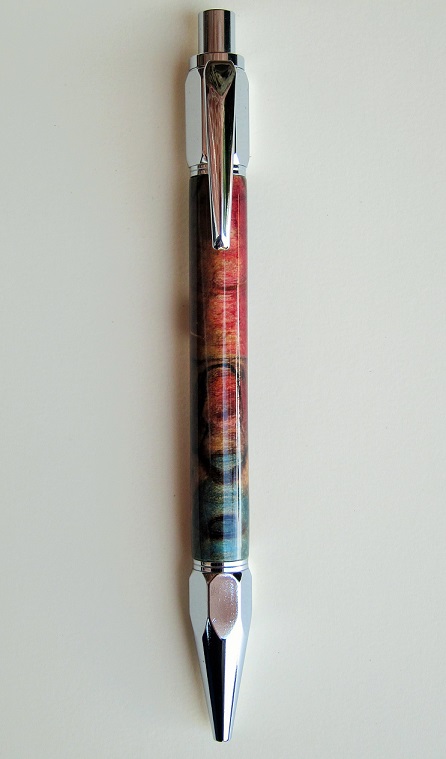 This is a Vertex Chrome Pencil Kit I turned last night using a Terry Rounded Dyed Blank from Exotic Blanks.