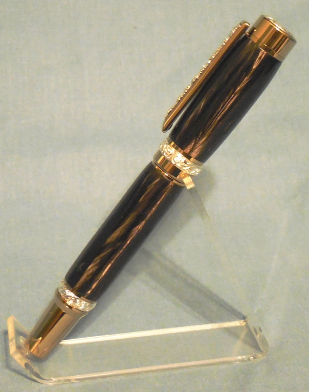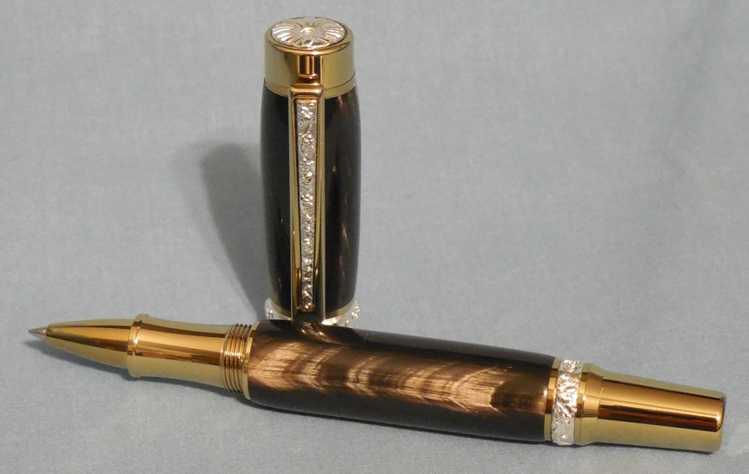 #3 - Cambridge Hybrid Roller Ball – Ti Gold & Sterling Silver – Buffalo Horn This beautiful Buffalo Horn dresses up this Ti Gold & Sterling Silver Cambridge nicely. The buffalo horn was acquired from a local knife manufacturer. I think it looks much better as a fine writing instrument