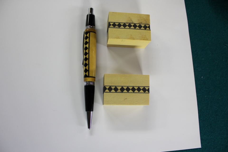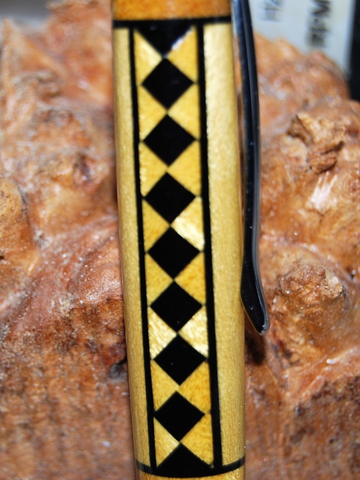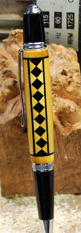 This is Yellowheart and Ebony. This blank has 37 piece's all cut by hand. Finish is 5 coats of thin flex ca