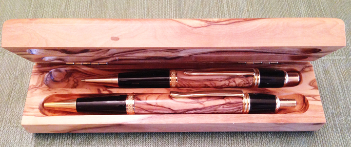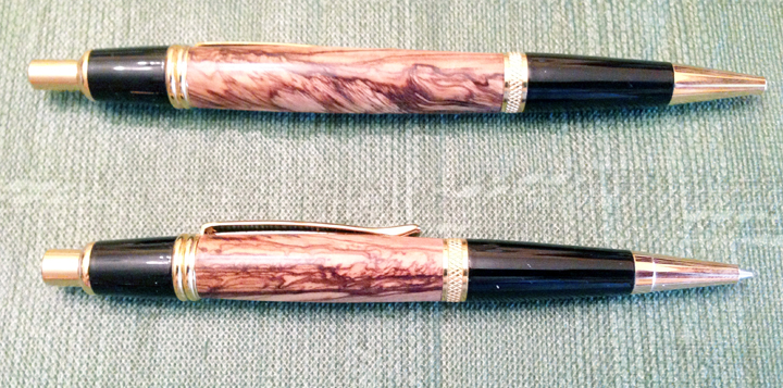 Here's a WSII Click Pen & Pencil set that I made for my church's Oktoberfest auction next month. I had a beautiful BOW blank that I've been saving for this project.
