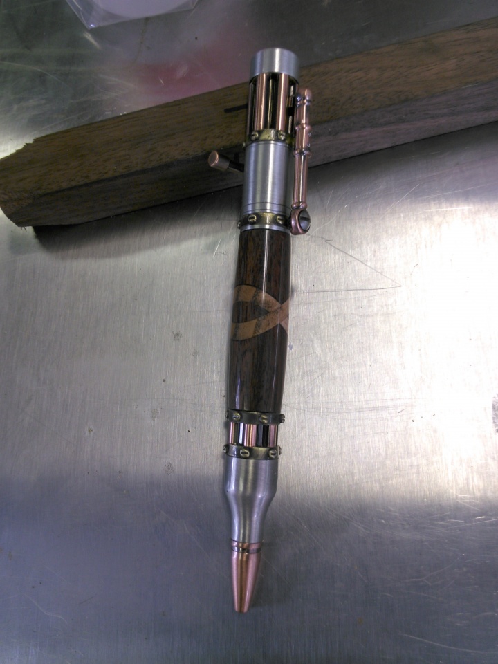 Steampunk kit with walnut and ash segment, not real happy with the fit, may try to dissamble and clean up the ends of the blank.