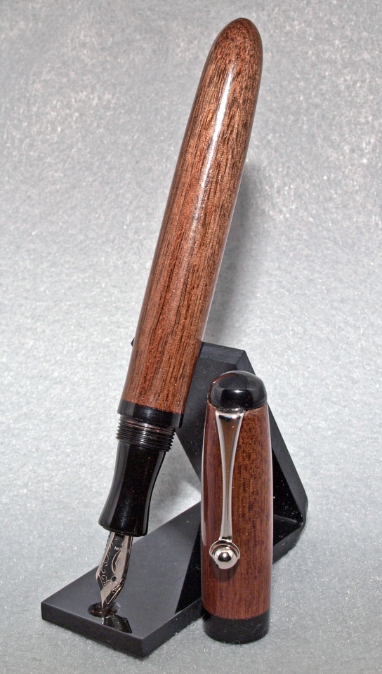 Here is my first attempt at a wood body FP. The body and cap are walnut and black section and other parts are acrylic. It has an Edison EF #5 nib and Schmidt converter. I wanted to try an extra fine nib because sometimes a fine nib seemed made a line too thick and wet for note taking.