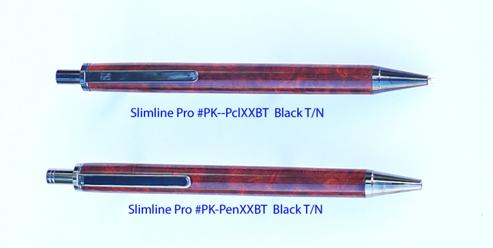 I just received these from PSI. Just a note of warning. The Black T/N pen and pencil sets do not match. I called and was told they have changed suppliers and they are still getting rid of the pencil kits from the former supplier so the two will not match. If you want a matched set be sure to check to see if the new kits have come in yet. I am out of luck because I turned the pen barrels before the kits arrived. I had a gentleman anxious for the set so I was ready to go when they arrived. What a disappointment when I put them together and… Well as you can guess I have nothing to sell him. The T/N pen kit looks more like gun metal to me. The pencil is VERY nice - I sure wish I had a pen to match. Oh - I also paid for the faster delivery - sometimes things just do not work out!