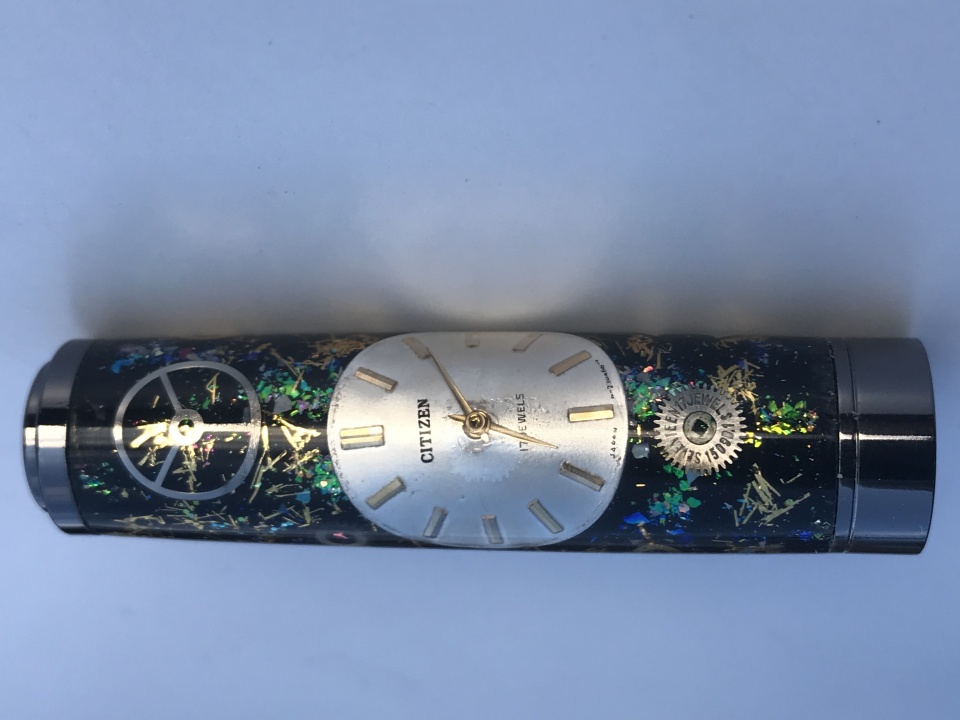 They do make pens with a watch face in the cap that works. It is a Cartier
