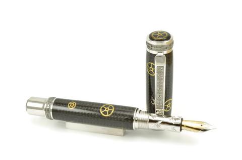 Here is another variation that I like with just gears spring clips pinions etc... This one here has my 14kt gold nib along with custom finials at both ends. Hope you like it.