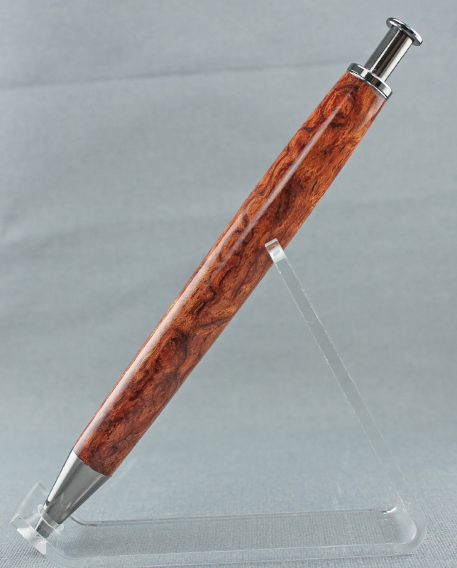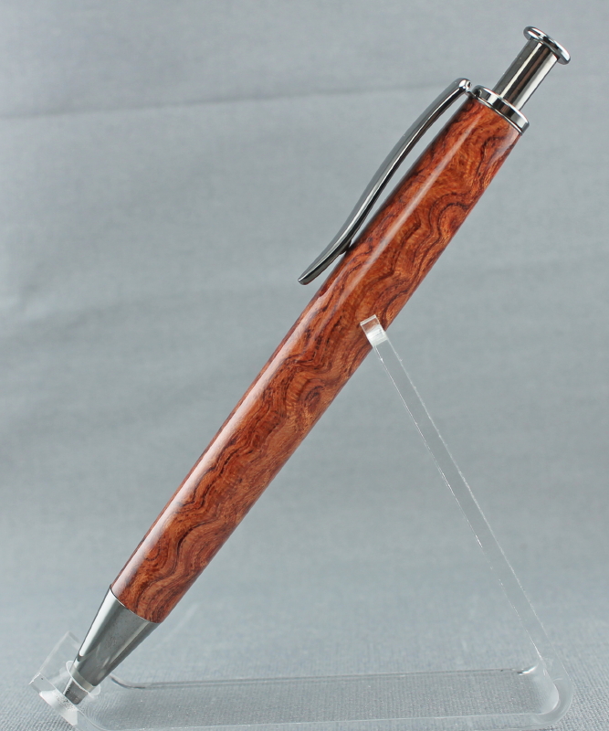 Fantastic Pen, Stephen. Glorious Blank, I'll show my ignorance, so I will mention the "Elephant in the Room", I haven't heard of a "Waterfall Figured" Timber. Is it the long random and swirling grain pattern down the length of the Blank? Superb Fit and Finish. Brian.