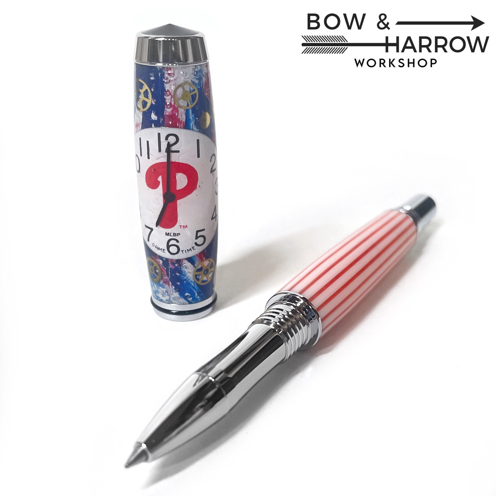 I'm a huge Phillies fan, so I had to make a Phillies pen for this year's playoffs. The cap is from Stadium Pen Blanks (made by Blankwerks) and the body blank is by Zac Higgins at Resin Werks Studio