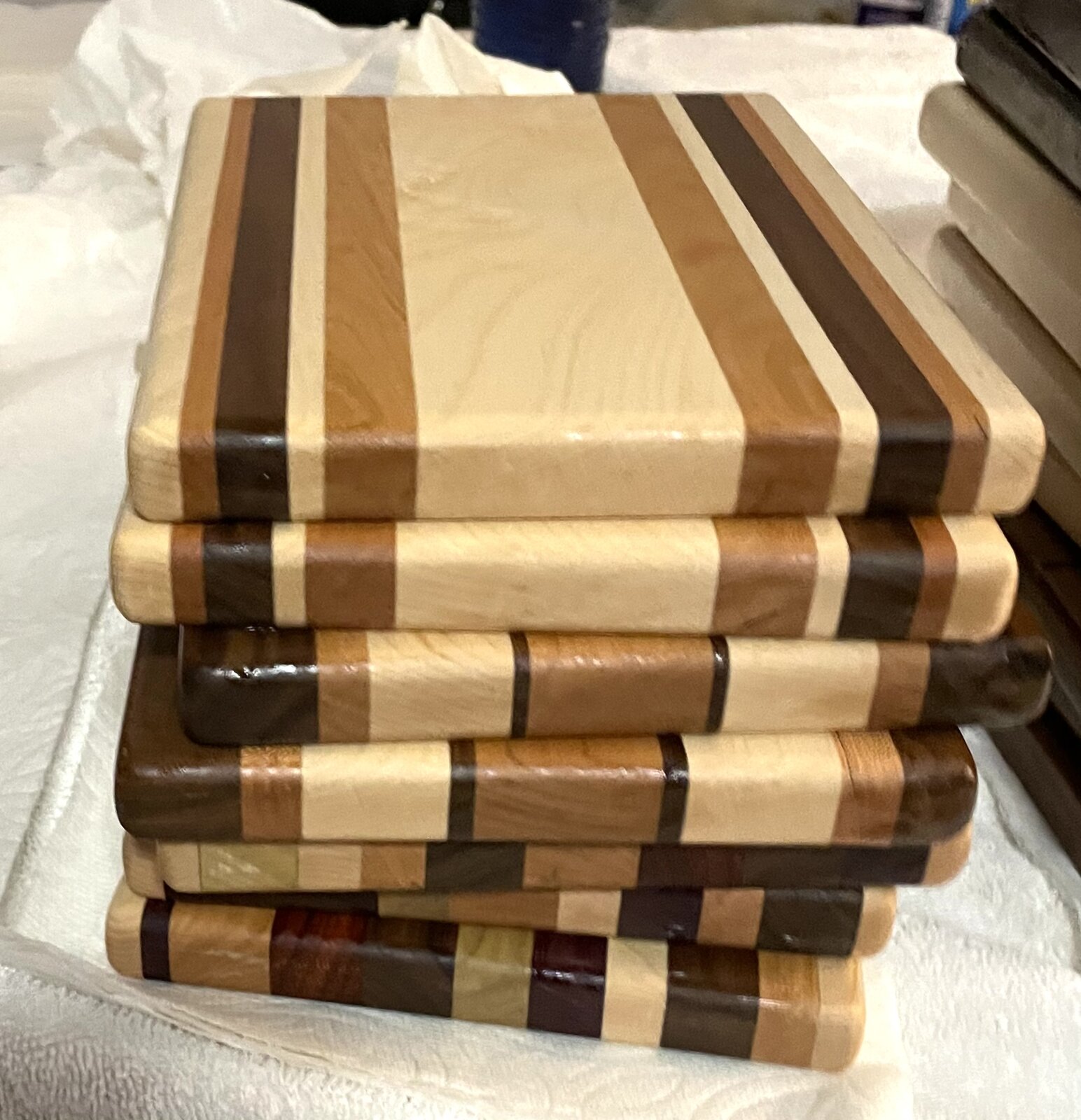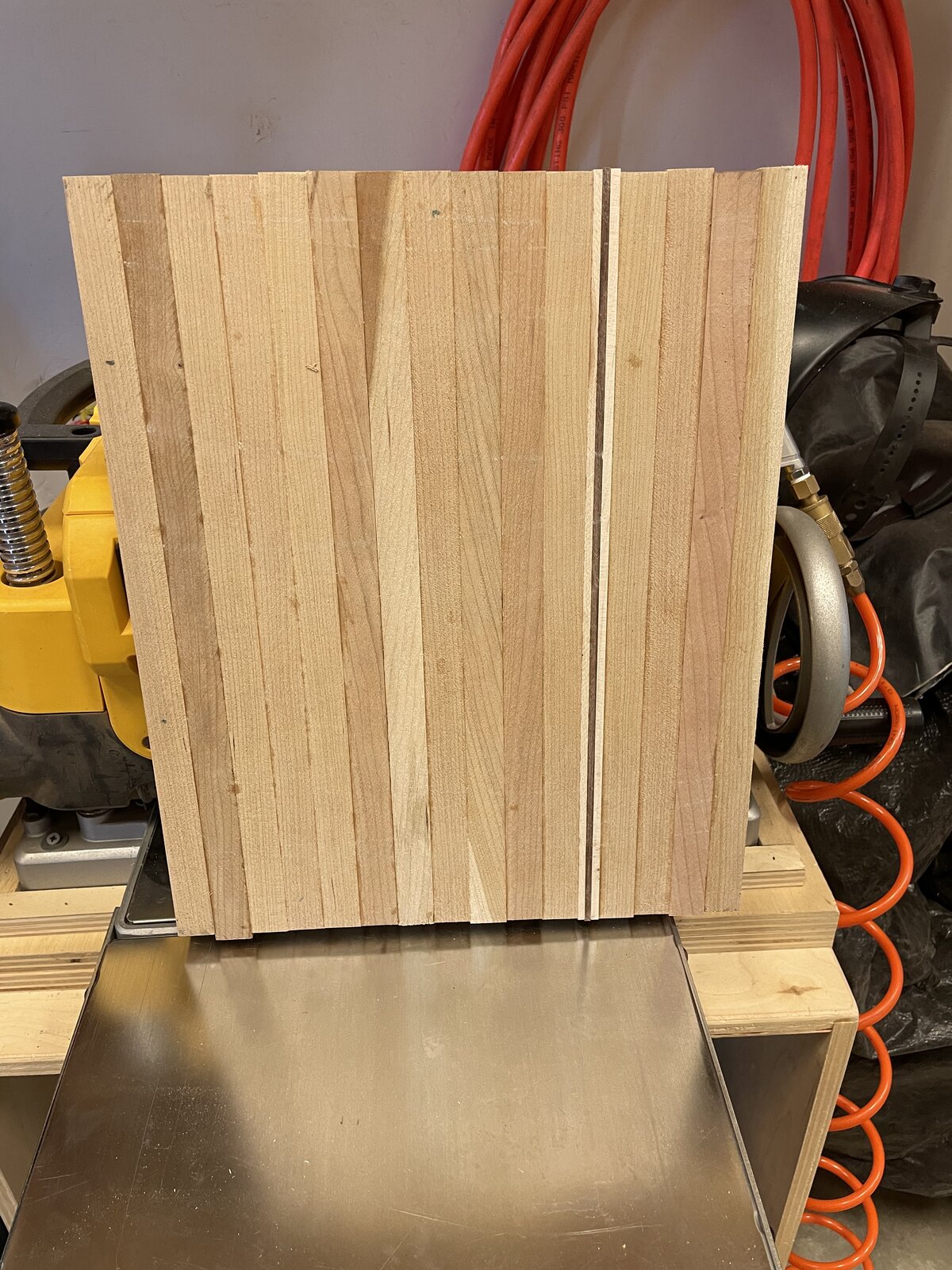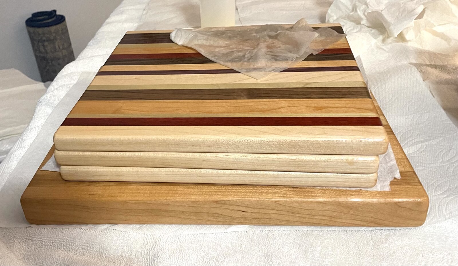 The large, thick one goes through a planer with Shelix cutters (super smooth) then through 180 grit on the drum sander. The smaller 12x11 and 8x6 ones get 60 grit, 150 and 180 through only the drum sander. It works!