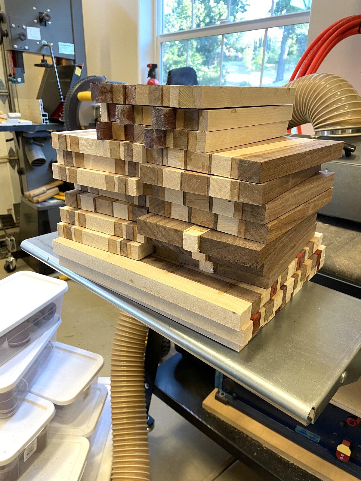 After May and early June sales, it is back to replenishing our stock. These will pass through the drum sander and router in a few minutes. There is definitely more to sales life than just pens.