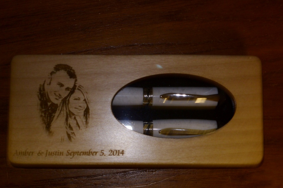 Tis the season for marriage. I made a set of Wedding Pens for a friends son's wedding coming up. Sedona Sterling Silver in white Aluminite from exotic. Roller ball and Fountain Pen. Laser by Kellashan.