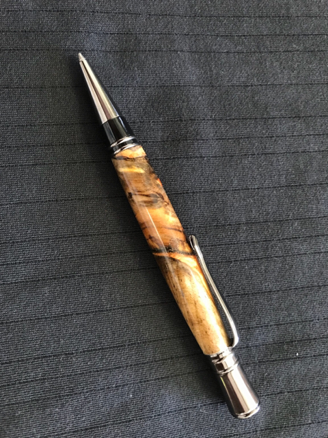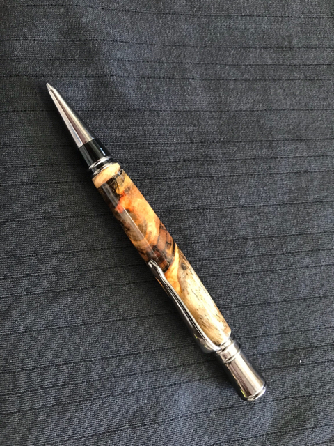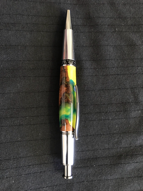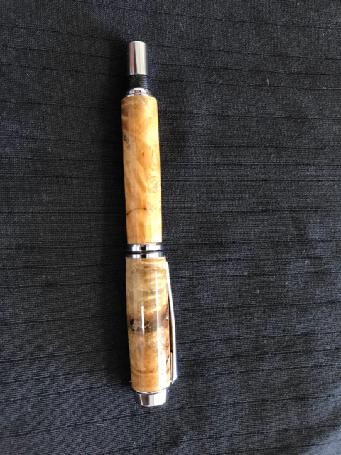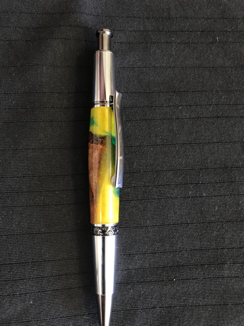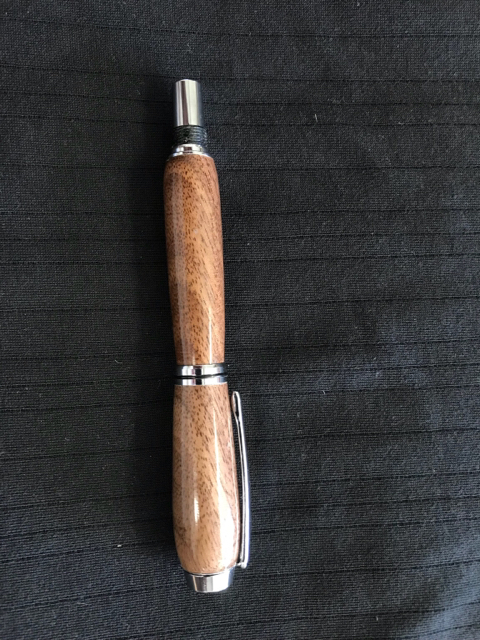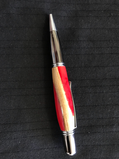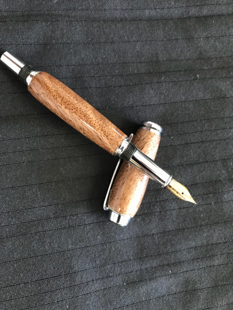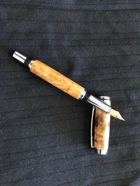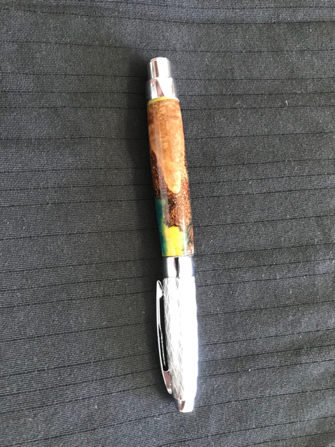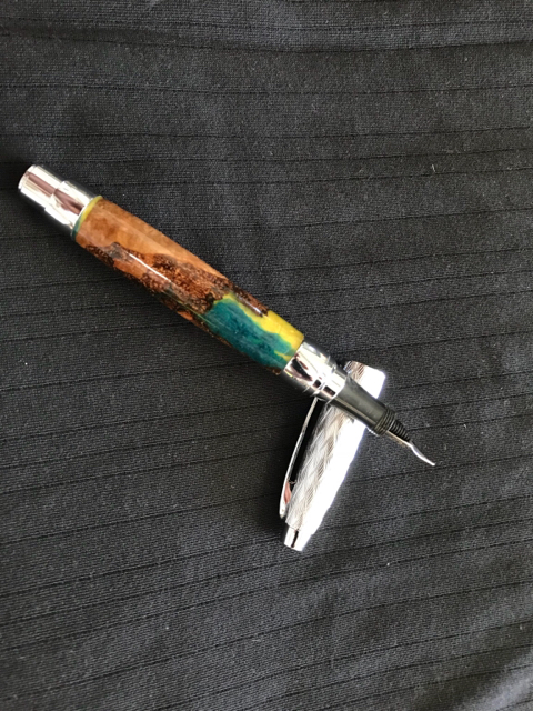 One Pressimo fountain pen using worthless wood and resin that I cast.