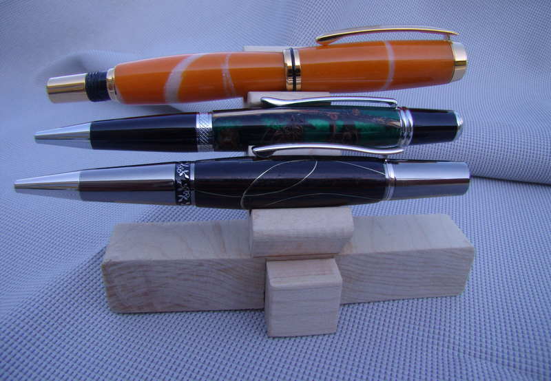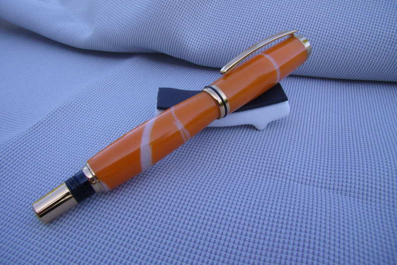 A few more to keep busy and out of trouble. The Elegant Beauty is "bellegno" with brass shim inlay. The orange Jr. Gent v2 is a gifted PR blank done by Vickie (mrcook4570's) talented wife. First pic is a chrome Sierra with another 'pine bud' custom casting (notice the small branch running parallel to the clip). Let me know if it meets your approval and if you have a favourite. Thanks for your comment(s).