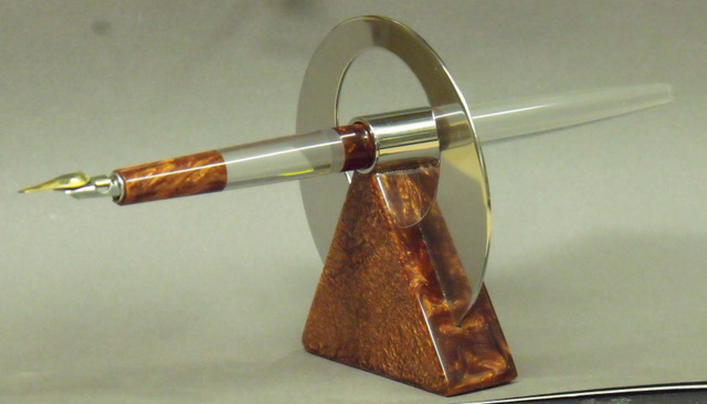 Well Skip as always you add so much to table and these are no exception. Some truely innovative and beautiful designs to show off some of your great pens. These are pure examples of how a pen stand can enhance a pens value. I always liked the Star Trek pen and stand and remember when you first presented it to us here. It still looks great and still fits in today.