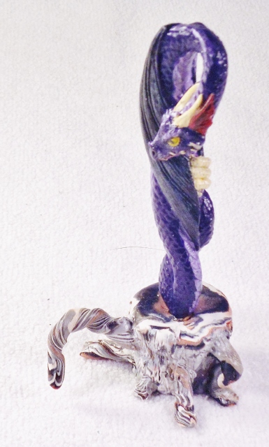 Just so you don't think your stand or box has to be made out of wood, I'll throw out this old photo of a pen and stand I entered in a contest a while back. A dragon rising out of an old tree stump. The pen is made of resin, and the stand is made of Polymer Clay in the Japanese layered style. Not a winner, however, but different and outside the box at the time. Jim S
