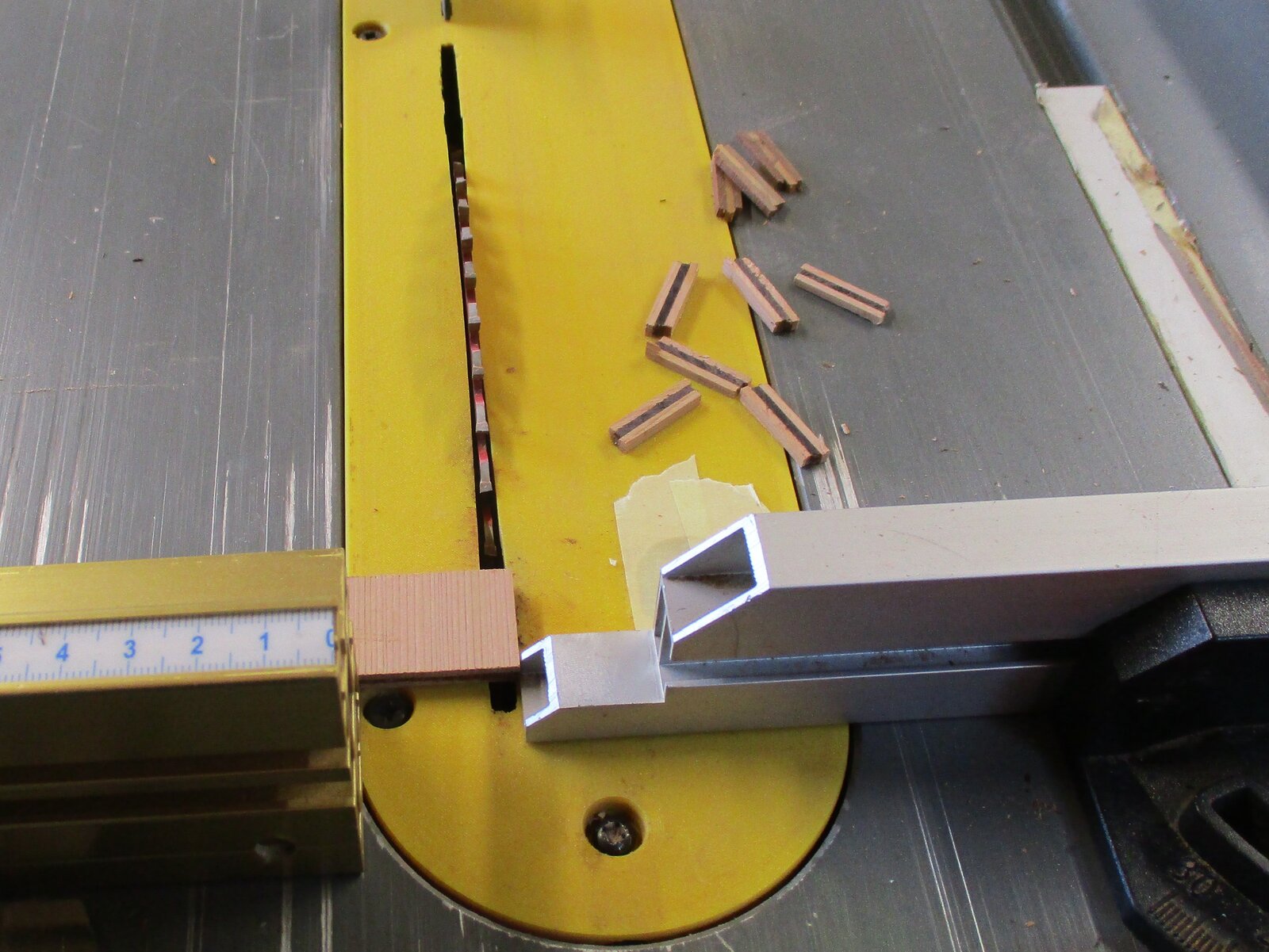 It looks an Incra miter gage. I would have adjusted the miter fence to be right up to the saw blade. Too much space allows error. I can see the differences in the little pieces at the cut stage.