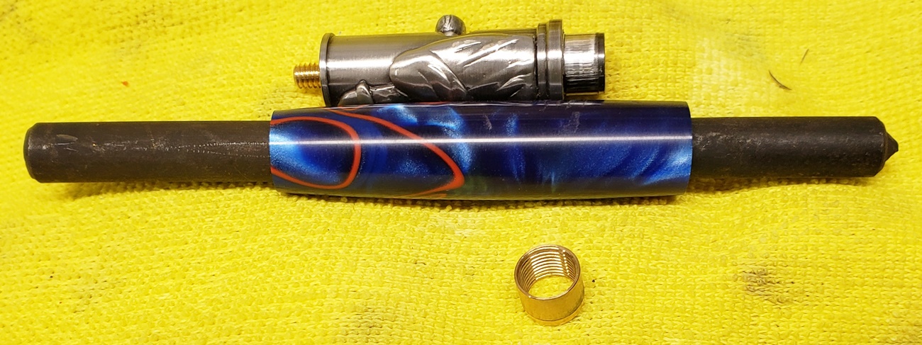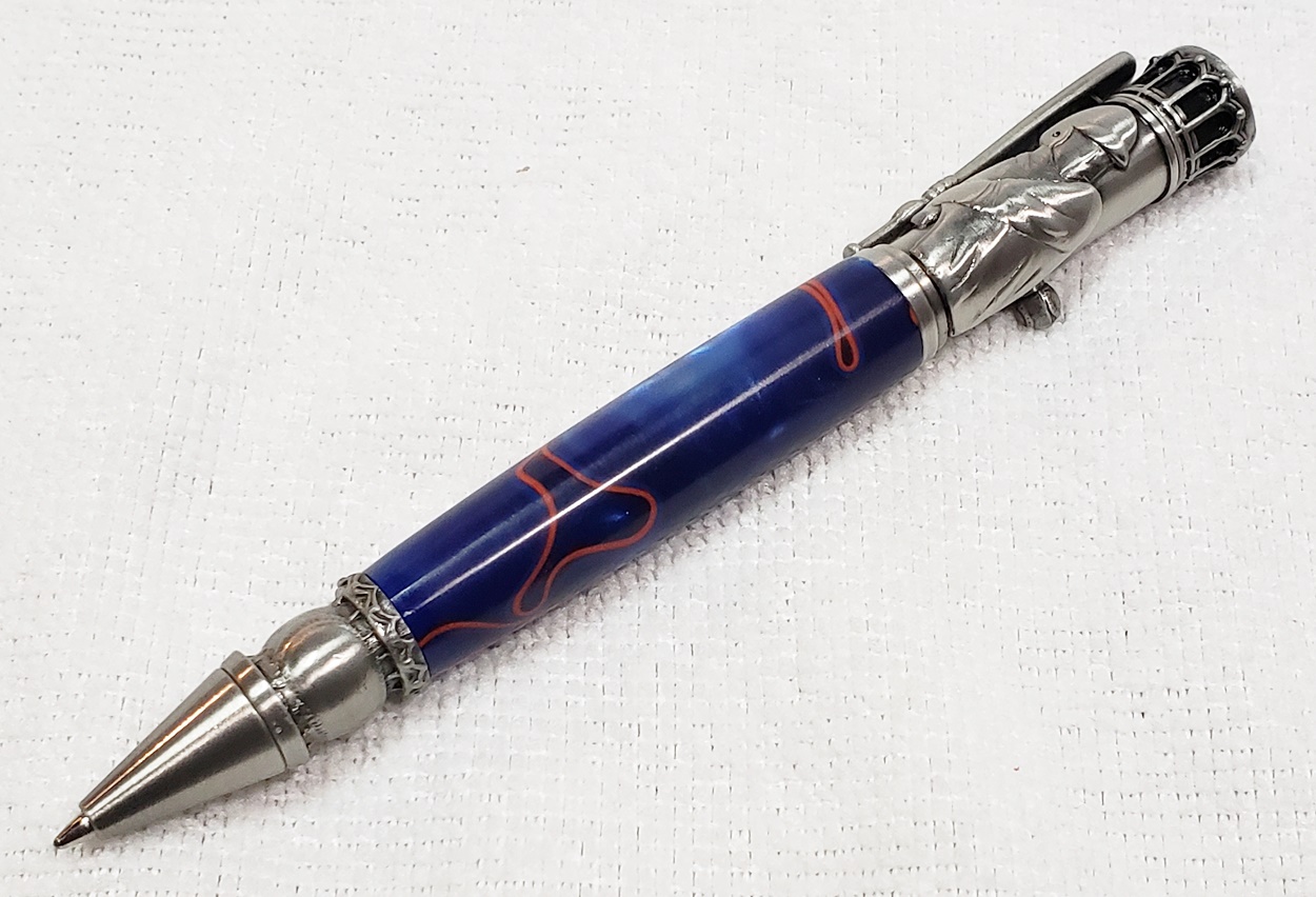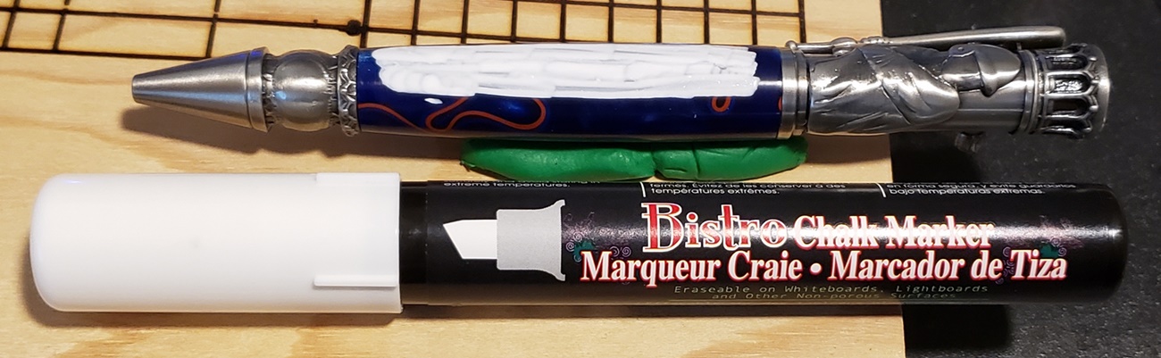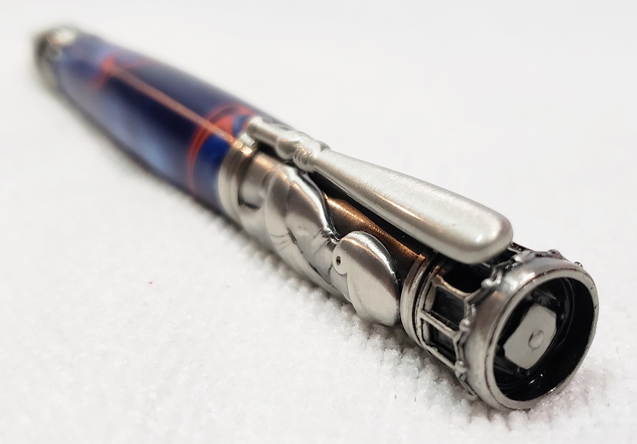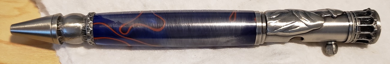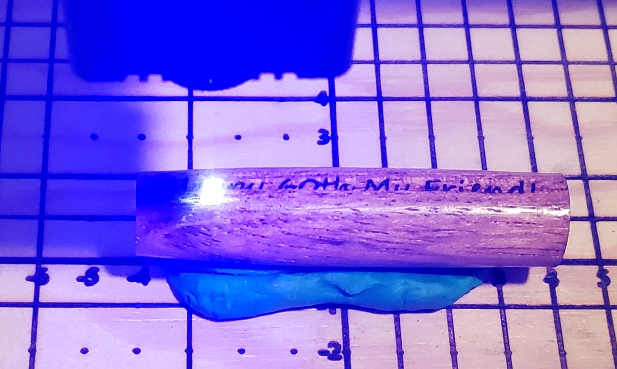 I made a baseball pen for my friend's 60th birthday. I actually turned and finished it before I got my laser engraver. I finally got around to engraving it yesterday. The engraving turned out good. Someone on the MEJE Master engravers Facebook group recommended covering it with liquid chalk, which worked well. But like most acrylic pens, the engraving needs to be filled to show up well. So I used silver Rub'n Buff, as I have in the past. My friend doesn't like shiny pens, so I had wet sanded it to 600 grit, and didn't polish it further. Unfortunately, the micro scratches picked up the Rub'n Buff. Even lighter fluid wouldn't clean it.