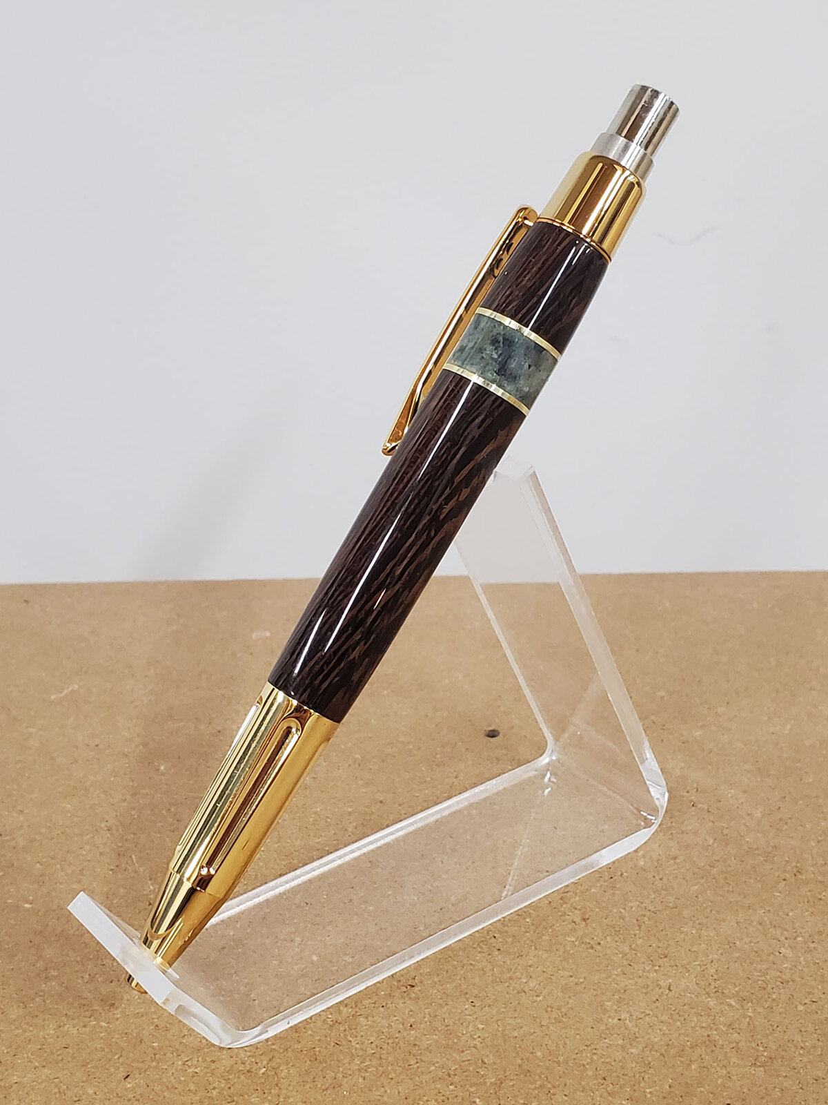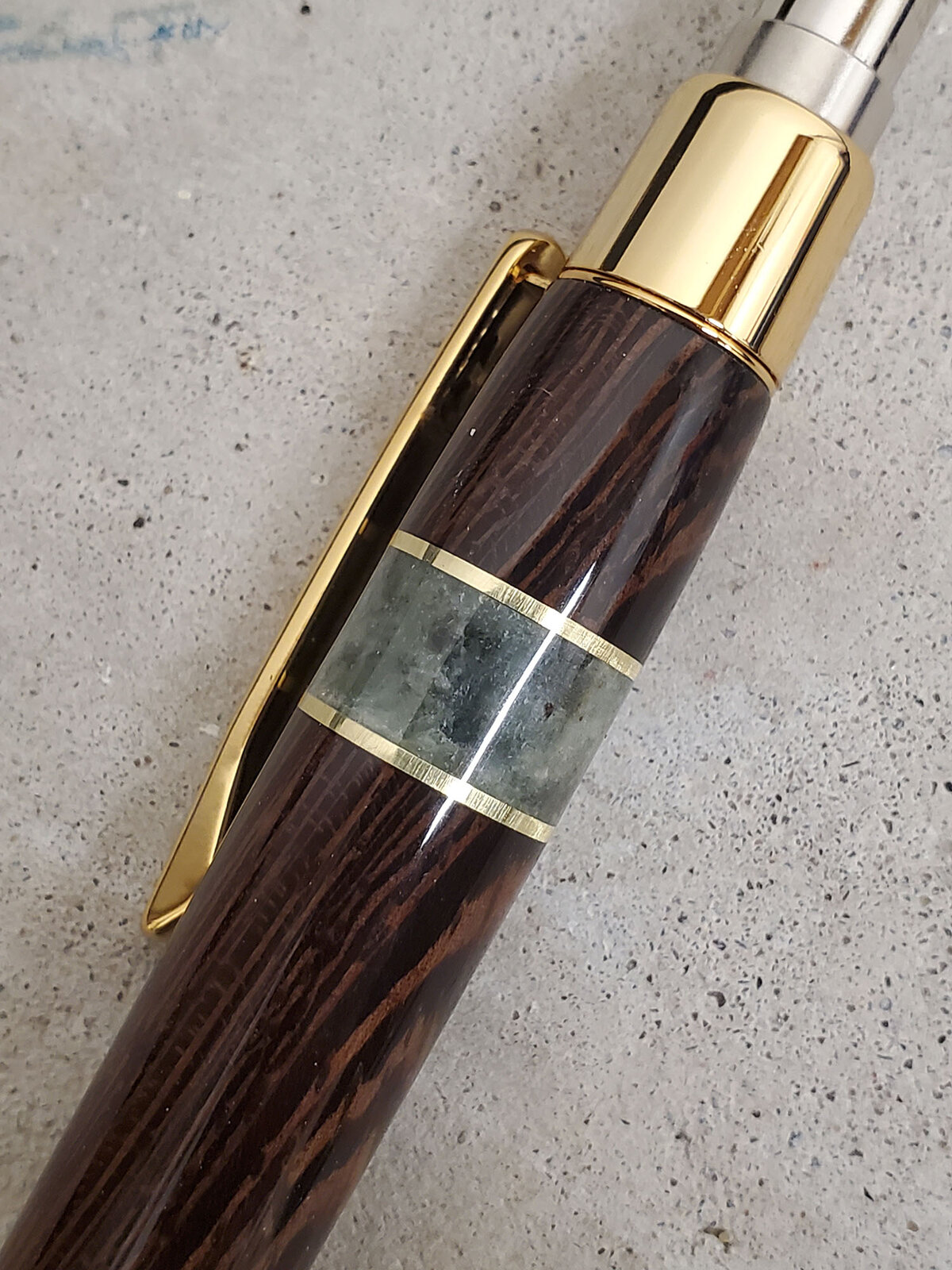 I only had two hours in the shop so I grabbed some wenge, some brass, and glued up a quick blank with medium and thick CA. Originally I wanted Walnut but I'm glad I used the wenge (and I'm also glad I remembered to line up the grain correctly!)