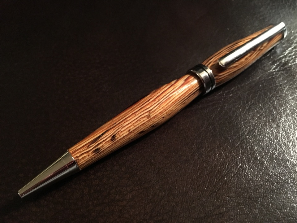 Very nice looking pen. Have to say though that does not look like Wenge that I am used to. I have a bunch of it in my shop right now and it is a lot darker in color and that is how I remember ever seeing it. Always hard to tell a species of wood from a pen size. That wood loves to splinter and if you get one in a finger it will fester right away. Need to be careful.