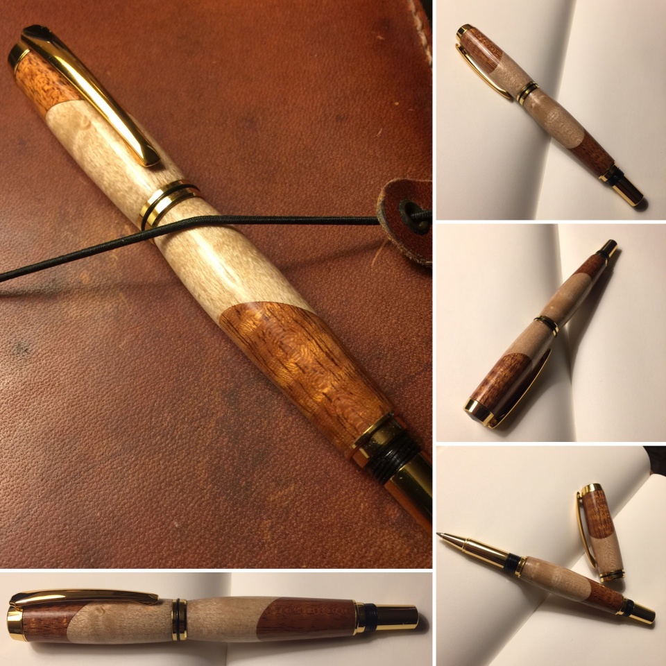 One more custom fountain pen I just finished the other night, a kit pen turned from a segmented blank I made from Maple and Mahogany, and a couple pens I made for my boys (7 & 4). They wanted dad to make them their own pens so they picked materials and kits and I turned them after dinner one night.