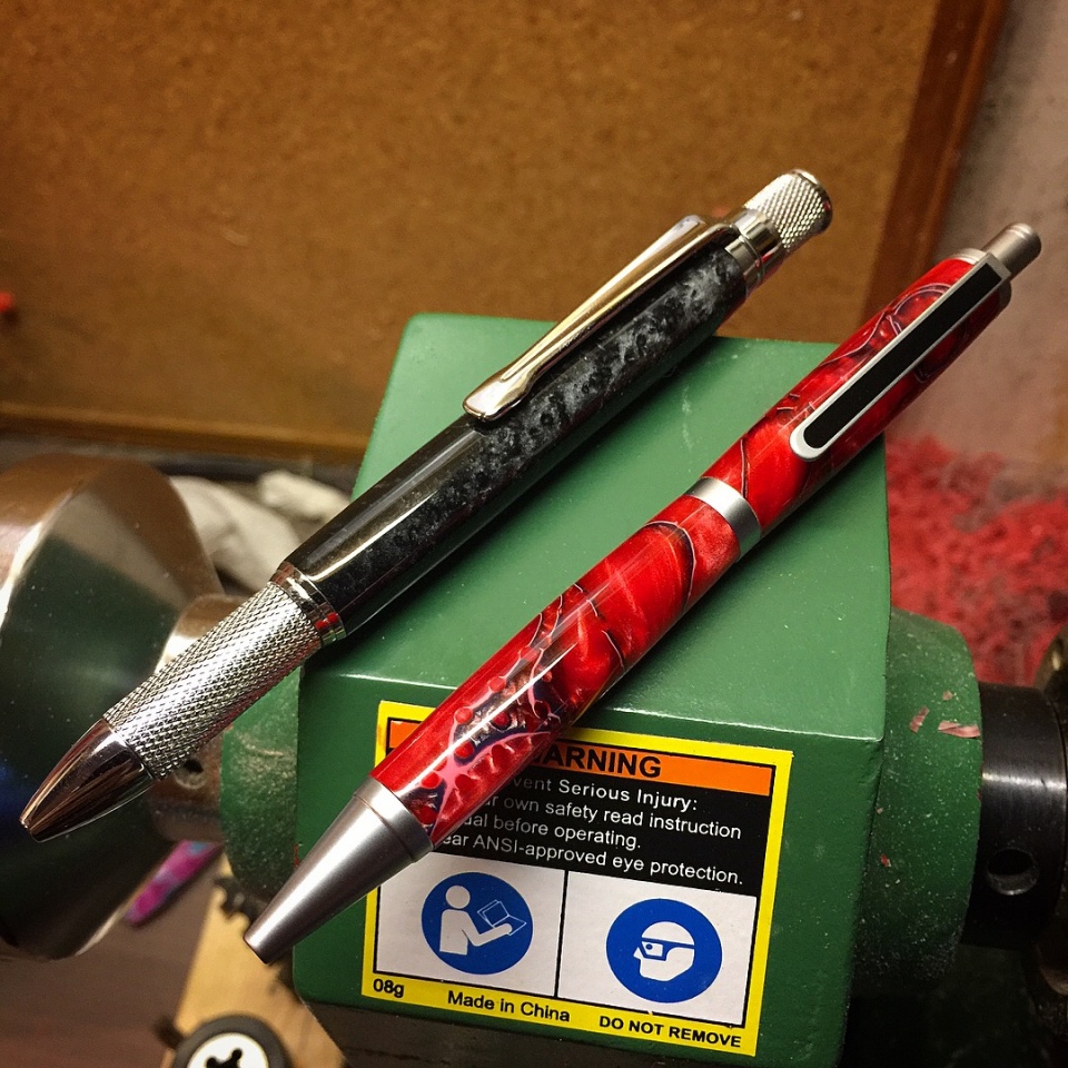 So after really getting my feet wet in 2016, I quickly decided that my goal would be to create full kitless pens. It took me longer than expected to acquire all the necessary tools, but once I had them, I got right to it. These are all 100% handmade with an entry level wood lathe and hand tools, from rounding blanks, to drilling and tapping all the connections. Beall 3 stage lathe buffer for final polishing acrylics.