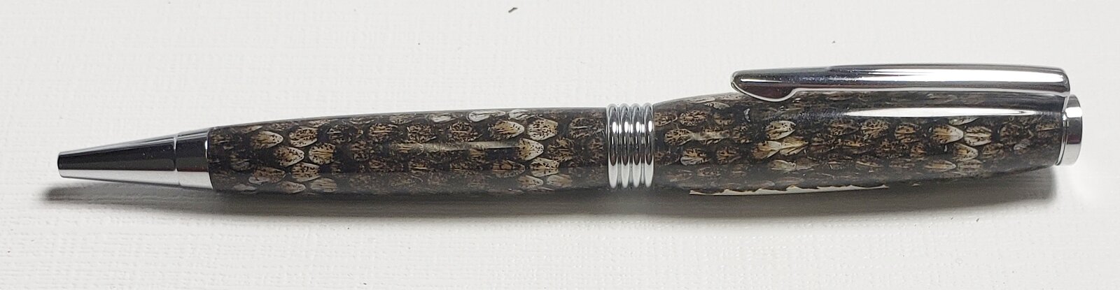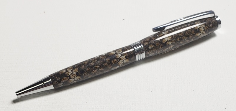 Thanks, I think they are cool also. I purchased Prairie Rattlesnake skins from a guy in S. Dakota for the last 20 years. Unfortunately for me he has stopped selling them.Very cool. Rattlers used to show up occasionally up in South Dakota where I grew up, but I haven't heard of any there for a long time. Sweet Pen! - It makes me want to seek out some blanks! - Dave