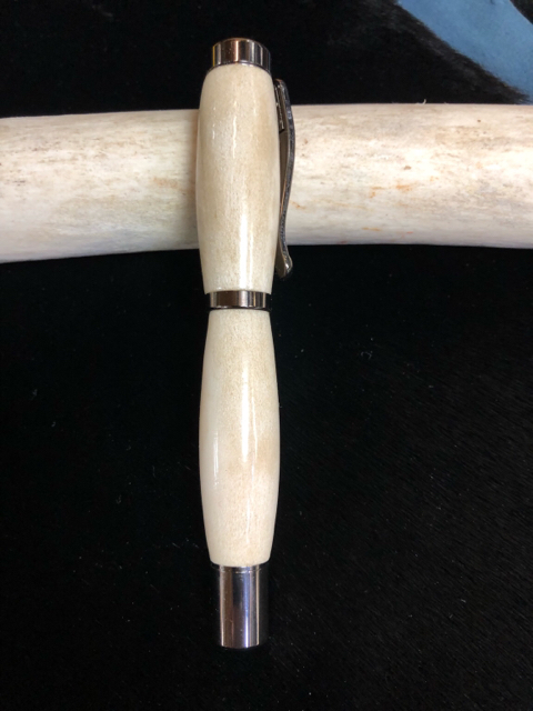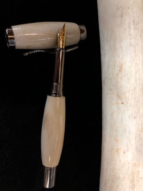 Pen #14: Minke Whale Bone with 14 Coates of Cyanoacrylate. Set in a Gunmetal Fountain Pen.
