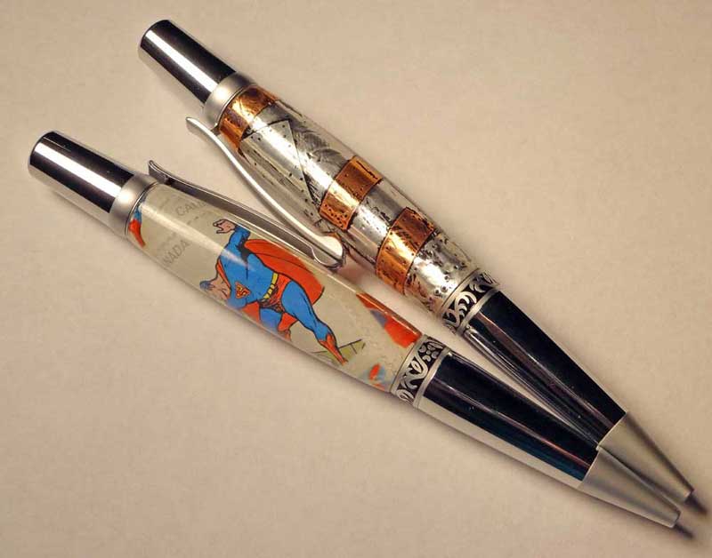 Whisky blanks from Jimm1, Steampunk pen, Superman Canada stamp pen and the bullet casing is a steel lined COPPER casing headstamped from Beijing.