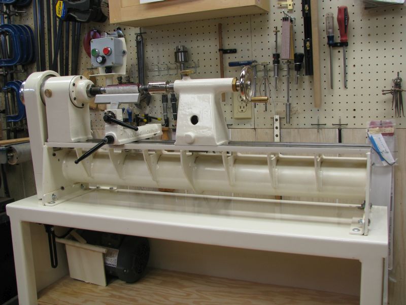 I started with a Jet 1014, it is now my buffer. Added a Delta 46-460 that I love. Got talked into buying an Atlas/Craftsman 12x30 metal lathe - it works nicely. Lately, my go-to metal lathe is a 40s era South Bend 16x60 at the Columbus Idea Foundry. Moving the tail stock is a bit of a workout - it has to weigh at least 250 pounds.