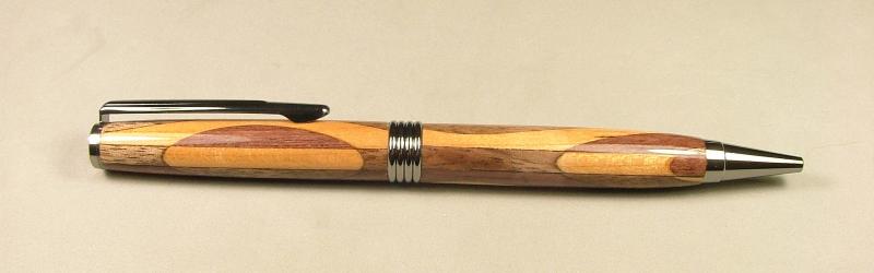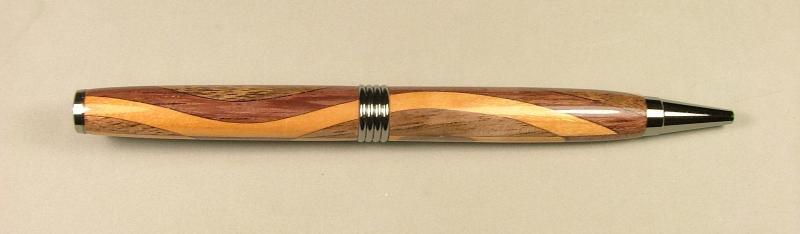 This one has been shown a couple of times now, but is the most creative of my pens. I wanted to use a table saw instead of a bandsaw to make a super thick celtic knot, and the Colorply looked like it was gonna be good for the job. I did the turning after he walked me through installing the knot into the blank. We both worked on the CA finish.