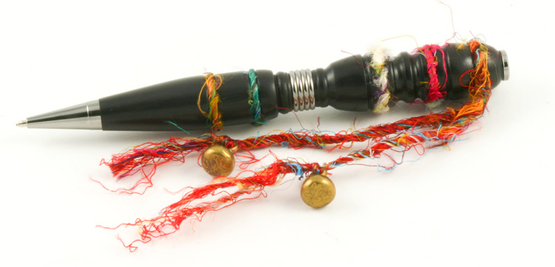 I think the material is what makes this pen my most creative. The body of the pen is made from a spollete, which is a simple type of fuse used in fireworks and is made from tightly wrapped paper. It was turned using a skew chisel, lightly sanded and finished with CA.