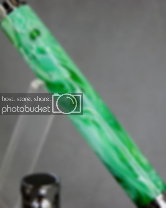 I have admired your blanks for some time, Brooks but I would have to say that the lime green is one of the most lively blanks I have seen you produce to date. That is one you should be proud of. I noticed with the first pen (devil heads) that there is some bleed from the red "heads" into the cream color near the finial. Did you notice that, and if so, how do you think that happened?