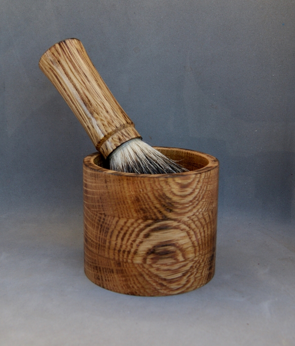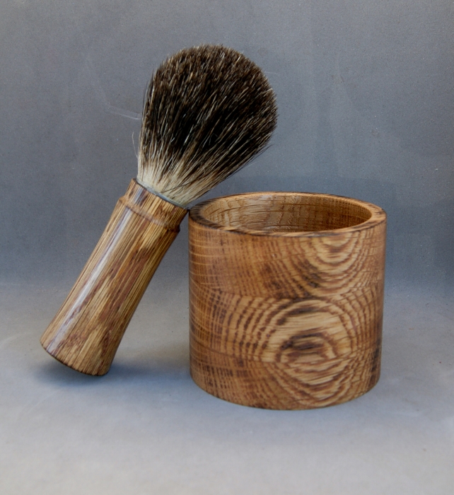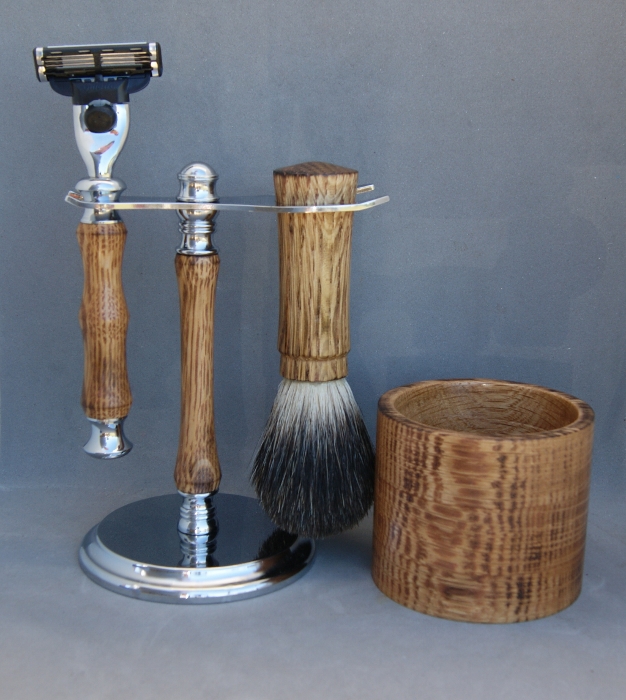 Here we have a full shaving set that was commissioned by a friend of mine. It's all white oak from whiskey barrels. Finished with Tru-Oil and lightly buffed. I also took a torch to it to bring out the grain. That part was kinda fun!
