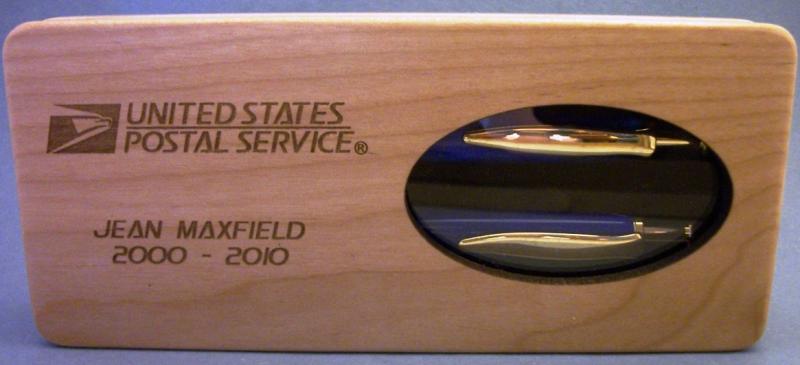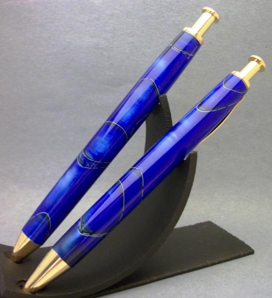 This is the Wife's Retirement Set for retiring from the US Post Office, / They are Gold Long Click Pen and Pencil from CSUSA With Blue Hawaii Blanks from Beartooth woods. They have been MM to 12,000 then chrome and plastic polished.
